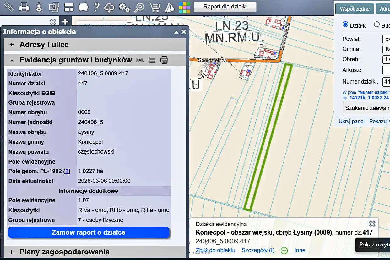 Na sprzedaż działka rolna – Łysiny, gmina Koniecpol