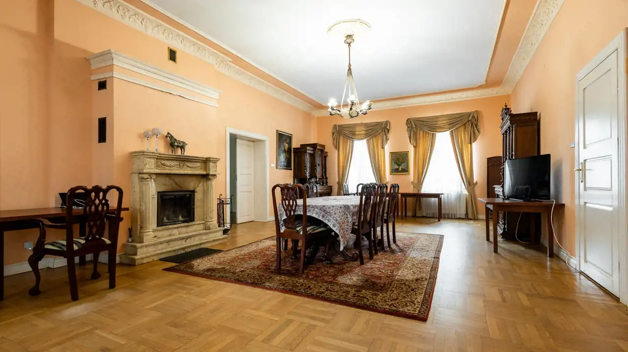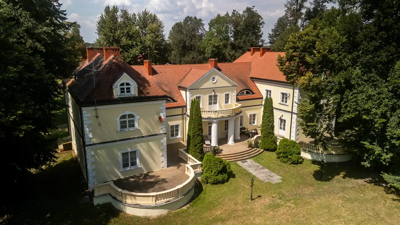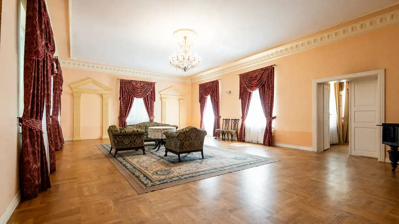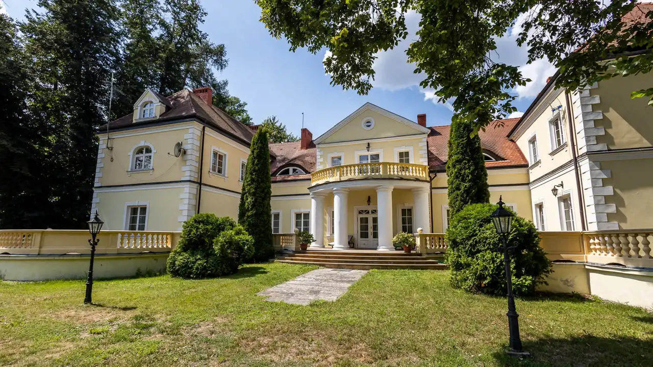 Piękna nieruchomość osadzona w lokalnej historii, a jednocześnie gotowa, by zapewnić nowym właścicielom wszelkie współczesne wygody. Pałac o powierzchni użytkowej 940 m² znajduje się na prywatnej działce obejmującej 6,29 ha – jest to teren częściowo ogrodzony.