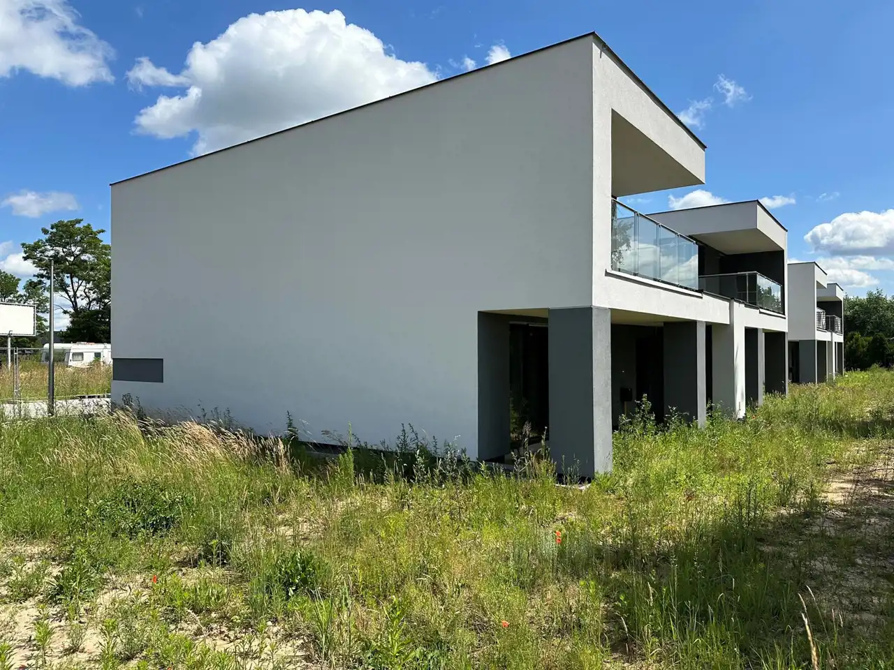 Dostępne są 3 ostatnie domy w zabudowie bliźniaczej, w stanie deweloperskim o bardzo wysokim standardzie wykończenia. Każdy dom ma powierzchnię 120 m² i składa się z: