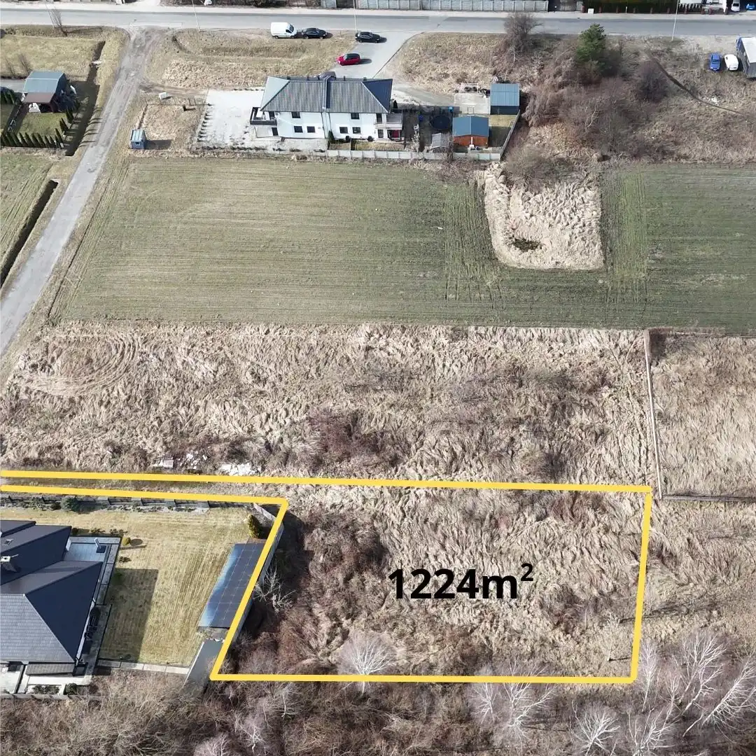Powierzchnia – wynosząca 1224m2 - oznacza kompaktowy charakter działki co wraz z regularnym kształtem stwarza szereg możliwości jeśli chodzi o jej zagospodarowanie, usytuowanie budynku mieszkalnego czy też późniejsze użytkowanie i utrzymanie terenu. Nieruchomości gruntowe w przedziale od 1000m2 do 1500m2 należą do najczęściej poszukiwanych na rynku.
