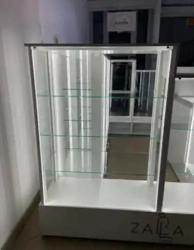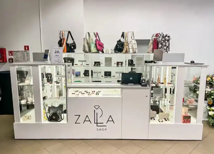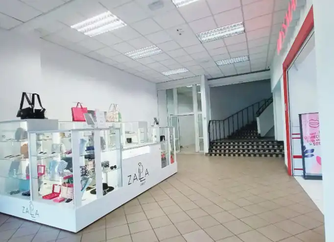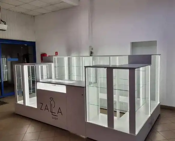 Stoisko znajduje się na parterze budynku zaraz przy wejściu głównym od strony ul. Dworcowej. W centrum działają tacy najemcy jak Rossmann czy Piekuś. Wyspa jest zaopatrzona w szafki zamykane na klucz, szklane witryny oraz podświetlone półki, dzięki czemu wyeksponowane produkty będą zaprezentowane w sposób dostępny i estetyczny dla klienta. Wizualnie meble są w stanie idealnym.