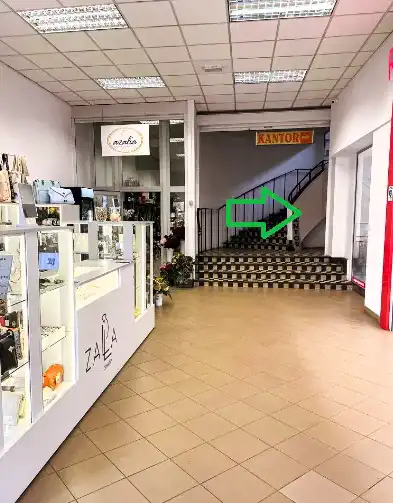 Oferowany lokal o powierzchni 27 m2 (razem z pomieszczeniem magazynowym) znajduje się na parterze budynku zaraz obok drogerii Rossmann, kwiaciarni oraz stoiska z biżuterią.