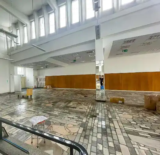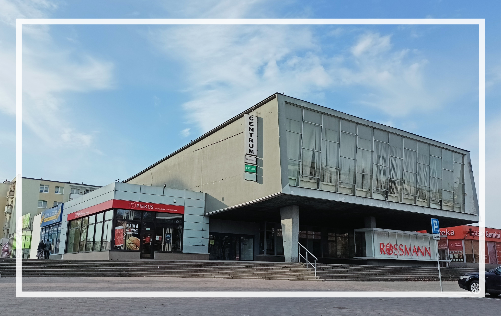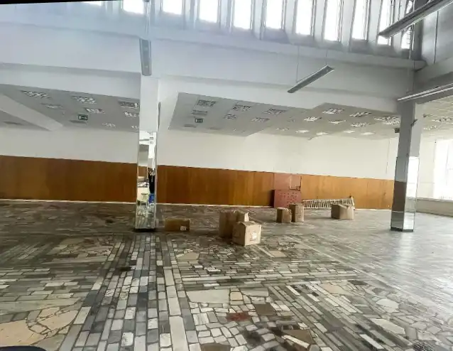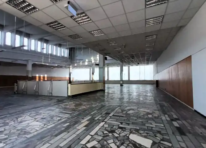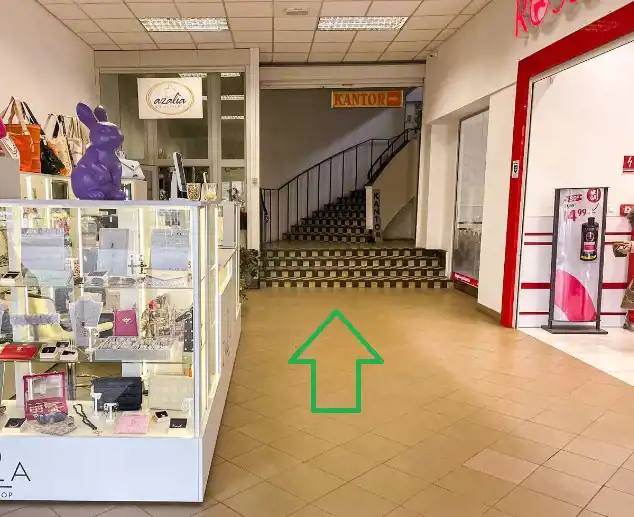 Oferowany lokal znajduje się w budynku handlowym dwukondygnacyjnym zbudowanym w latach osiemdziesiątych. Budynek jest użytkowany jako centrum handlowo-usługowe. Wyposażenie wnętrz typowe dla centrum handlowego. Na posadzkach parteru płytki ceramiczne. Na posadzkach I piętra w salach handlowych łupki kamienne. Stolarka okienna i drzwiowa aluminiowa, na zapleczu budynku drewniana. Drzwi wejściowe do budynku automatycznie rozsuwane.