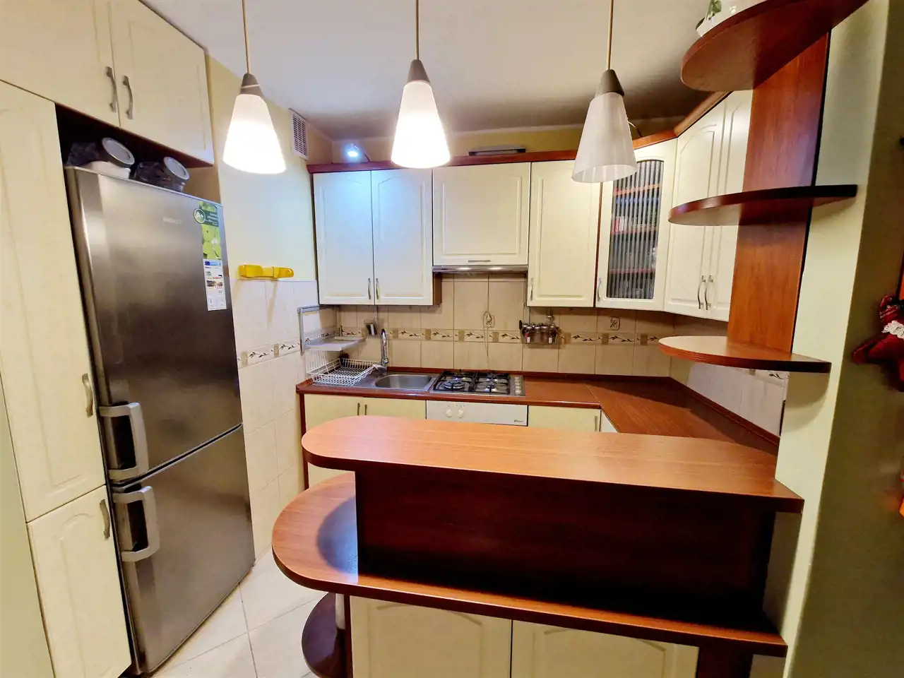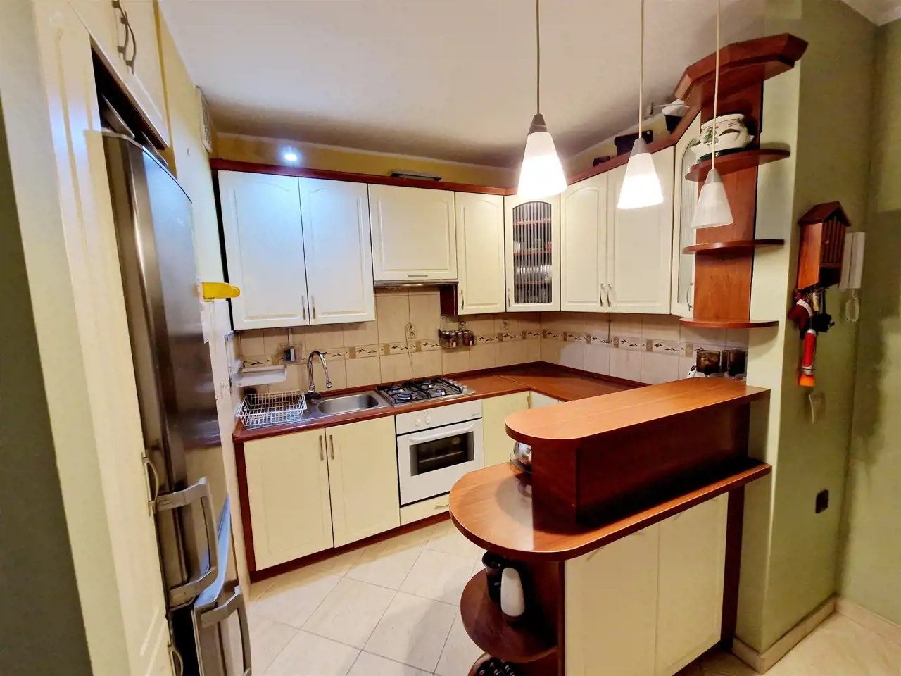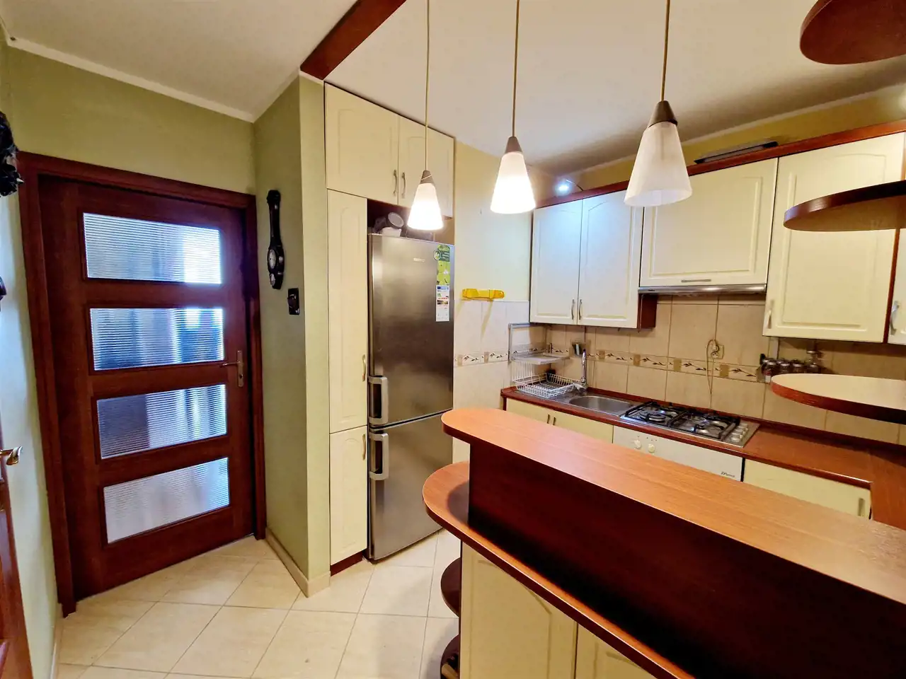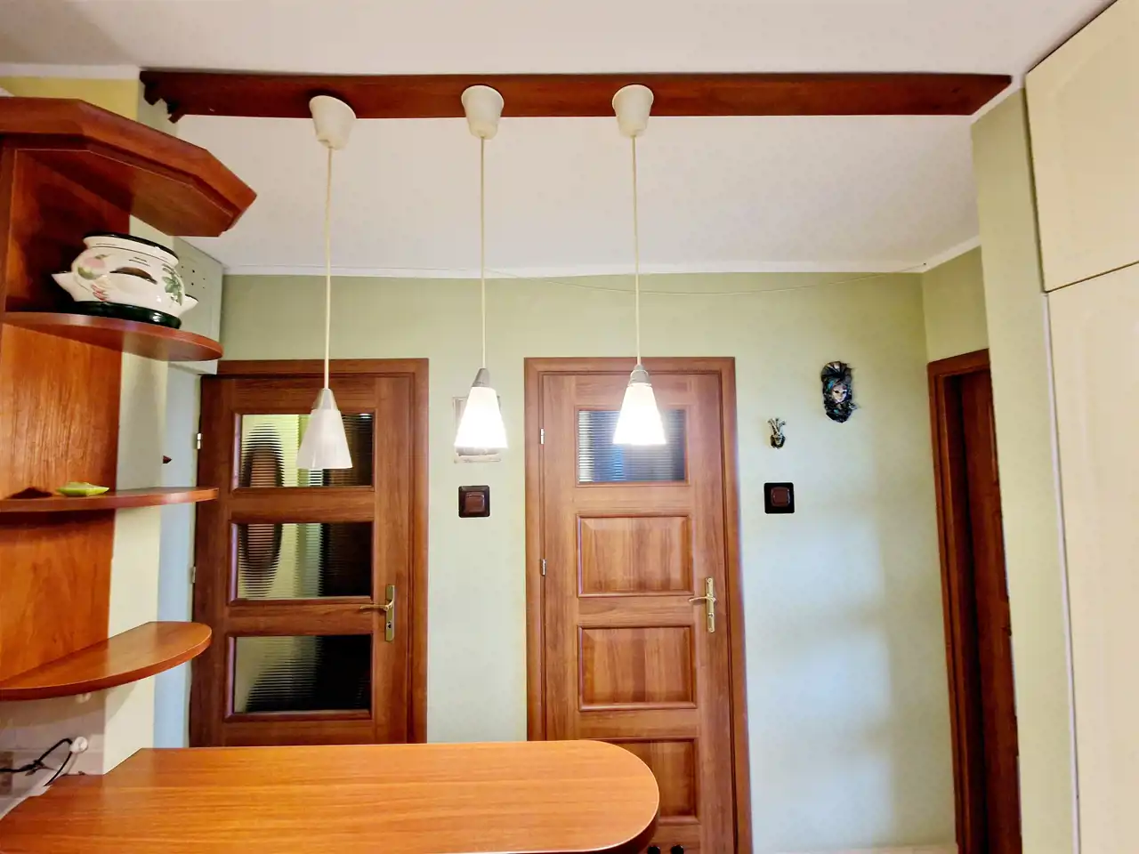 - Kuchnia wyposażona w meble pod zabudowę oraz sprzęty AGD (okap, kuchnia, piekarnik, lodówkę)