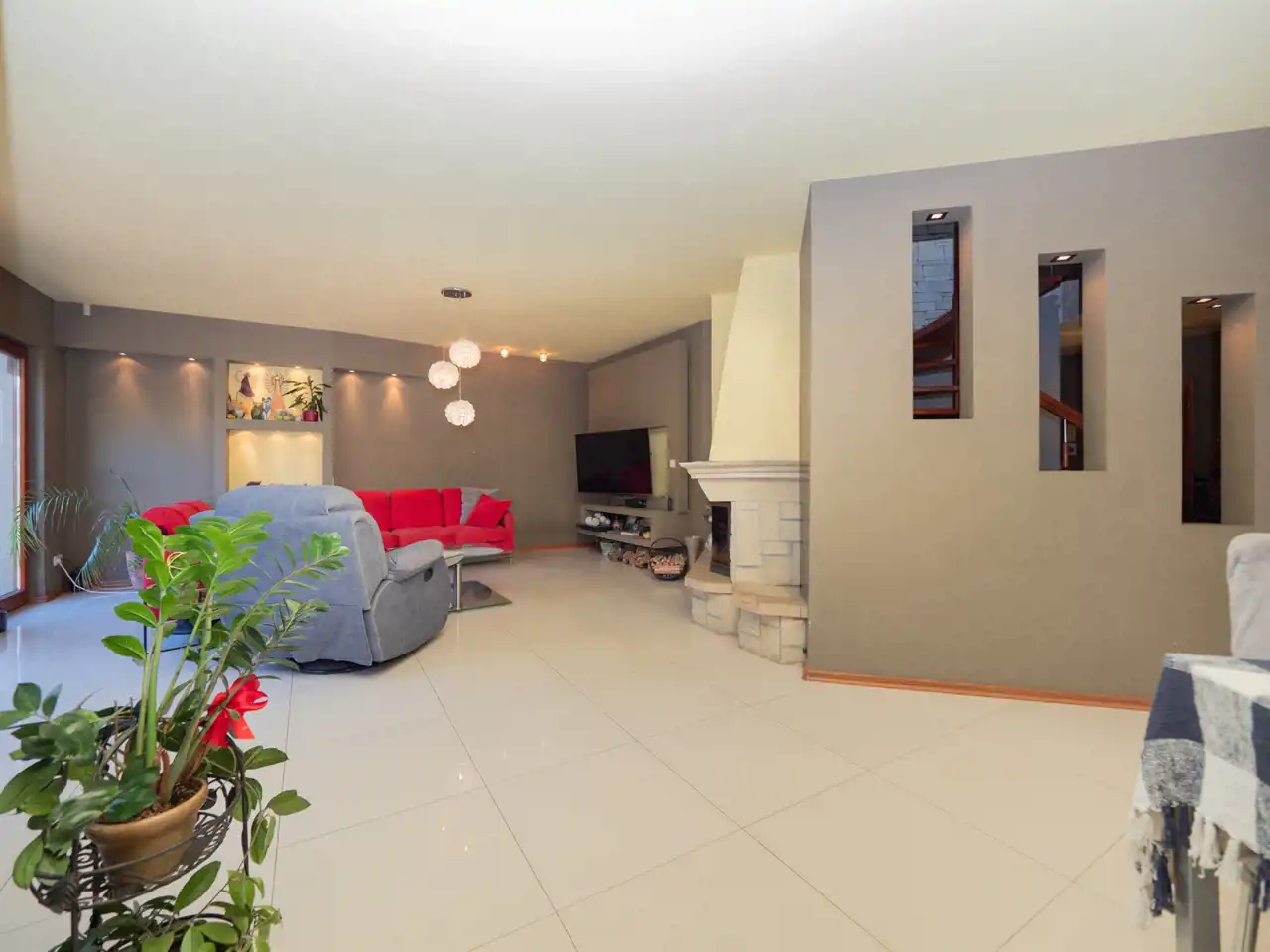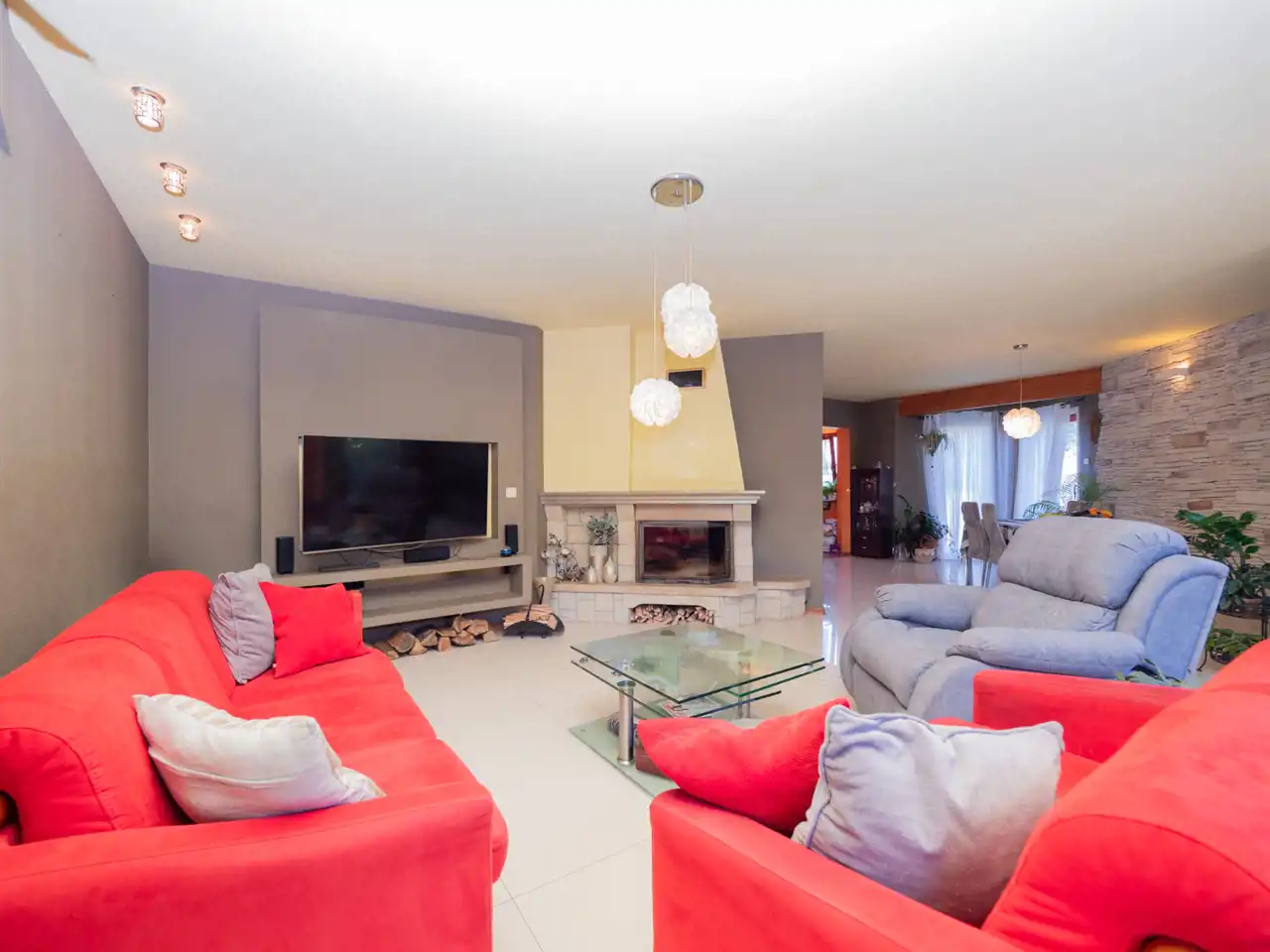 ✔ Salon z kominkiem i wyjściem do ogrodu