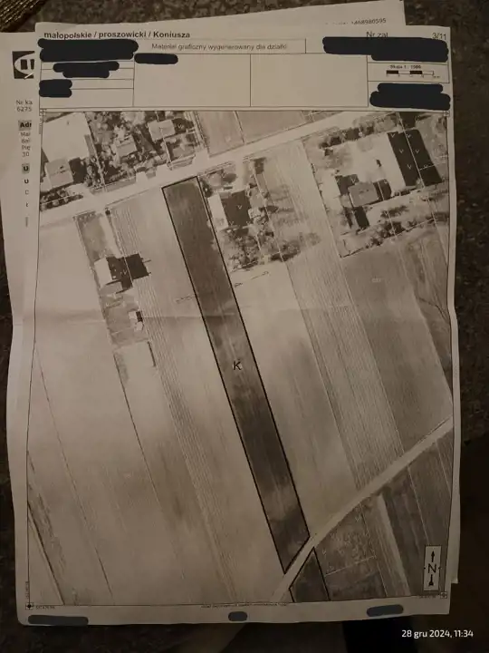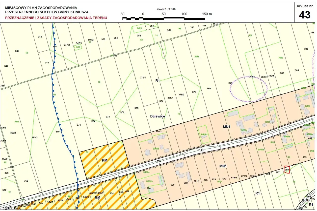 gmina Koniusza. Część działki przeznaczona pod zabudowę jednorodzinną (MN1) ok. 80m w głąb działki .