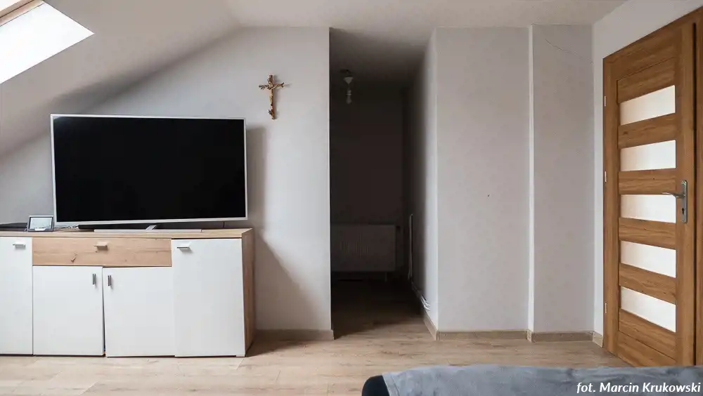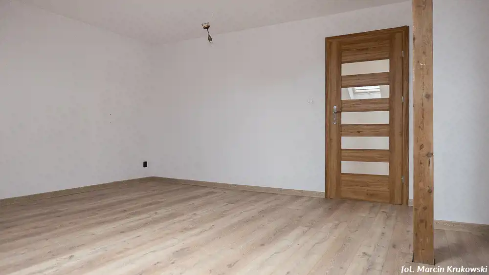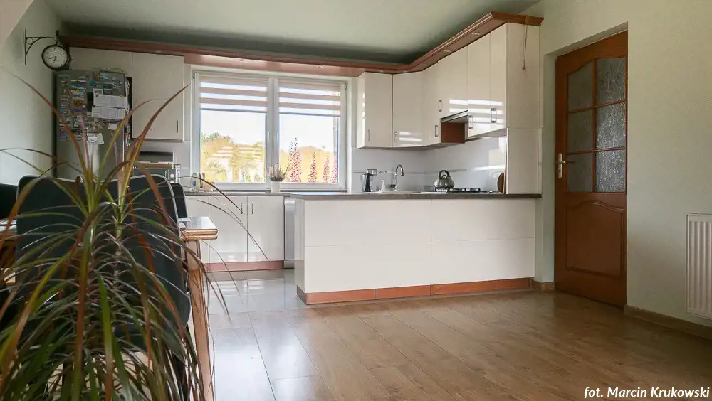 Dom jest zadbany, przestronny, swobodnie pomieści większą rodzinę bądź dwie rodziny (na piętrze w jednym z pokoi można urządzić kuchnię, są już doprowadzone przyłącza.