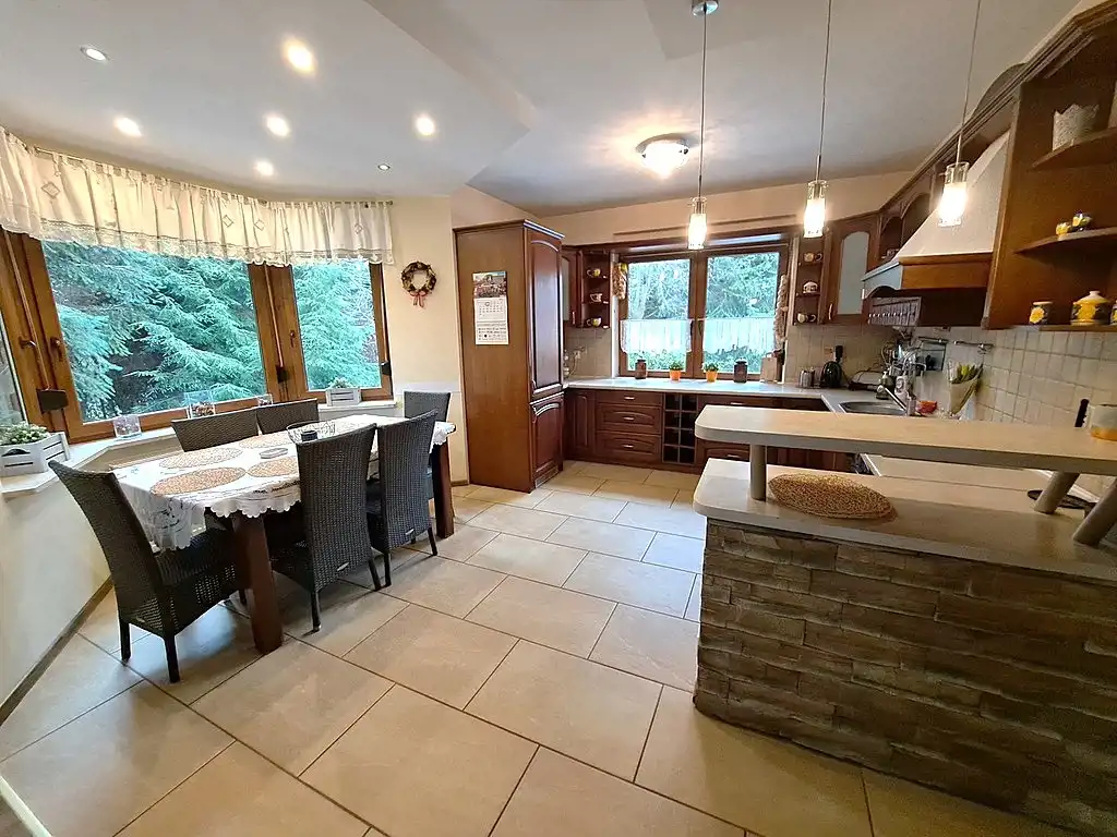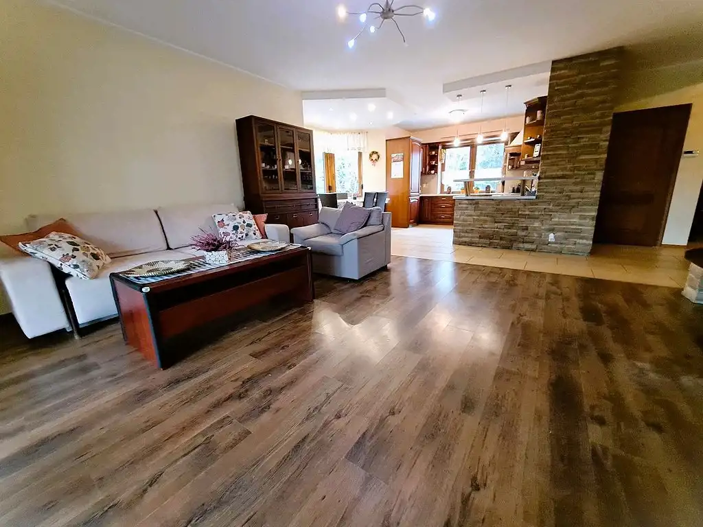 Dom sprzedawany jest z zabudową kuchenną, sprzętem AGD, meblami w zabudowie oraz wybranymi meblami wolnostojącymi – nieruchomość gotowa do zamieszkania.