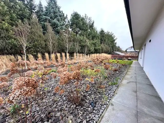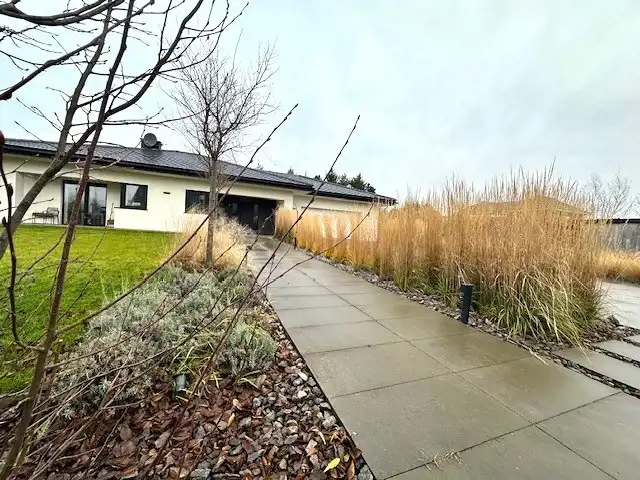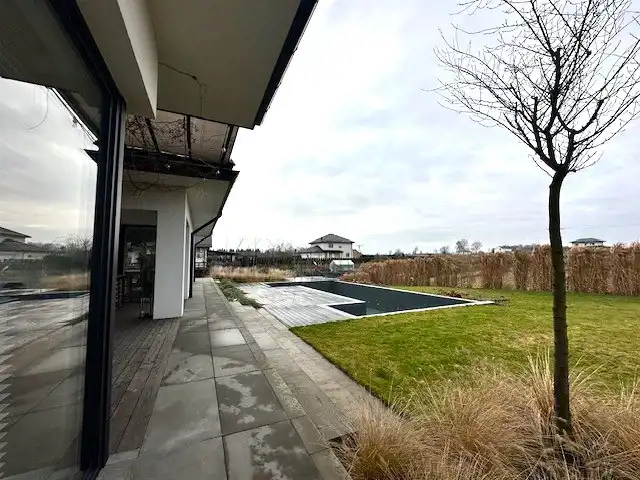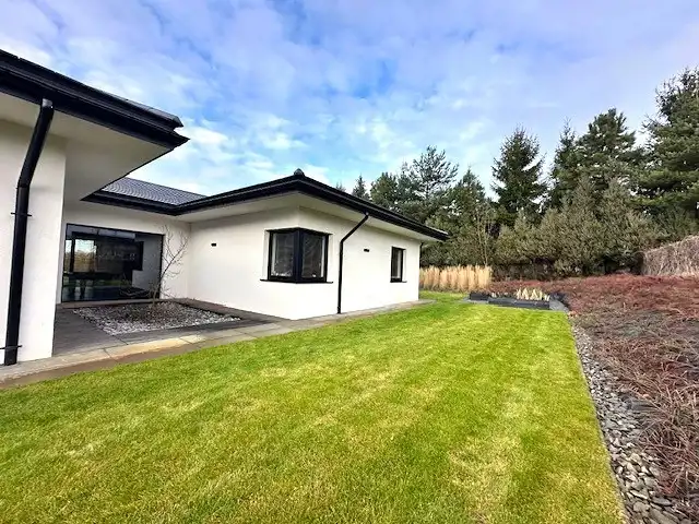 Parterowy, wolnostojący dom który łączy w sobie nowoczesny design inteligentne technologie i luksusowy komfort życia. To nieruchomość w której każdy detal ma znaczenie - od 125 metrowej przestrzeni dziennej z dwoma salonami kuchnią i jadalnią po ogród zaprojektowany jak prywatne SPA z basenem przelewowym i strefą jacuzzi.