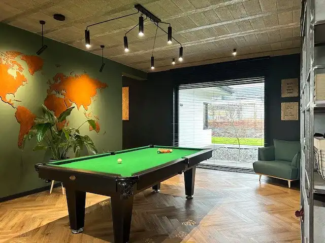 - dwa salony rekreacyjny i ze strefą multimedialną tworzą wraz z kuchnią i jadalnią imponującą 125 metrowa przestrzeń