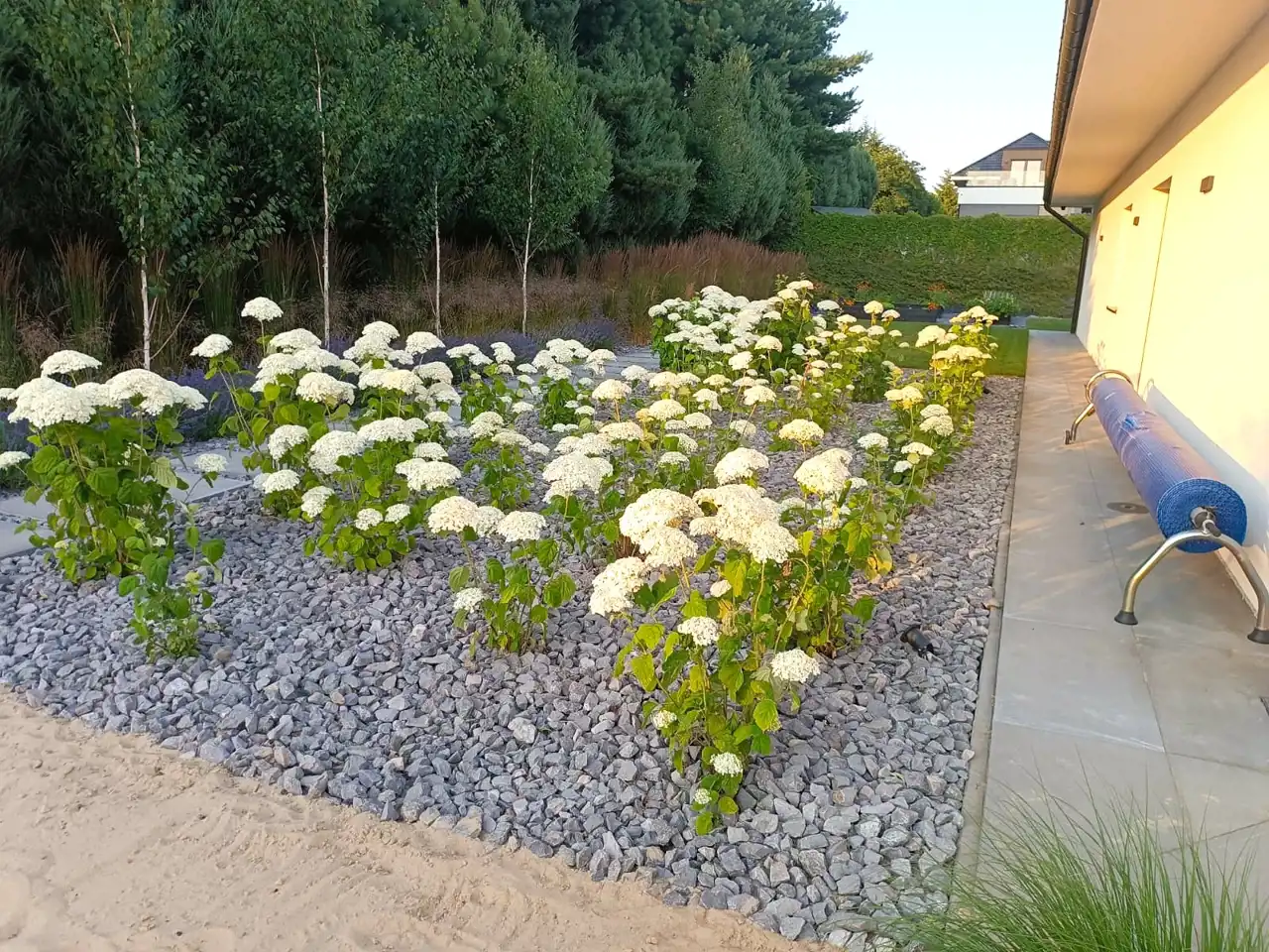 • pełna infrastruktura ogrodu : zdalne sterowanie nawodnieniem, pompa ciepła do podgrzewania wody w basenie i automatycznym dozowaniem chloru do utrzymania odpowiedniego pH, plac zabaw, duże palenisko, pomieszczenie gospodarcze