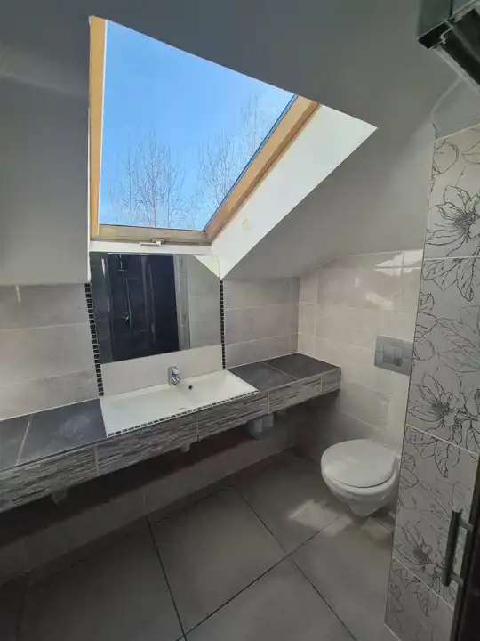 Piętro: Duża sypialnia, łazienka z toaletą i prysznicem