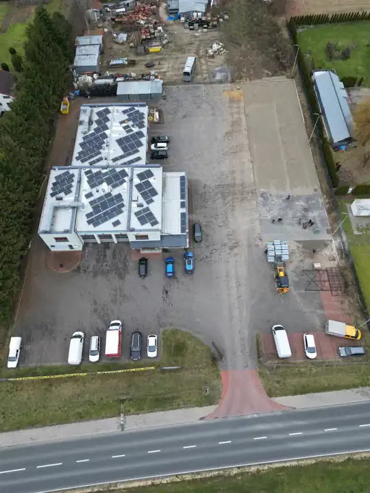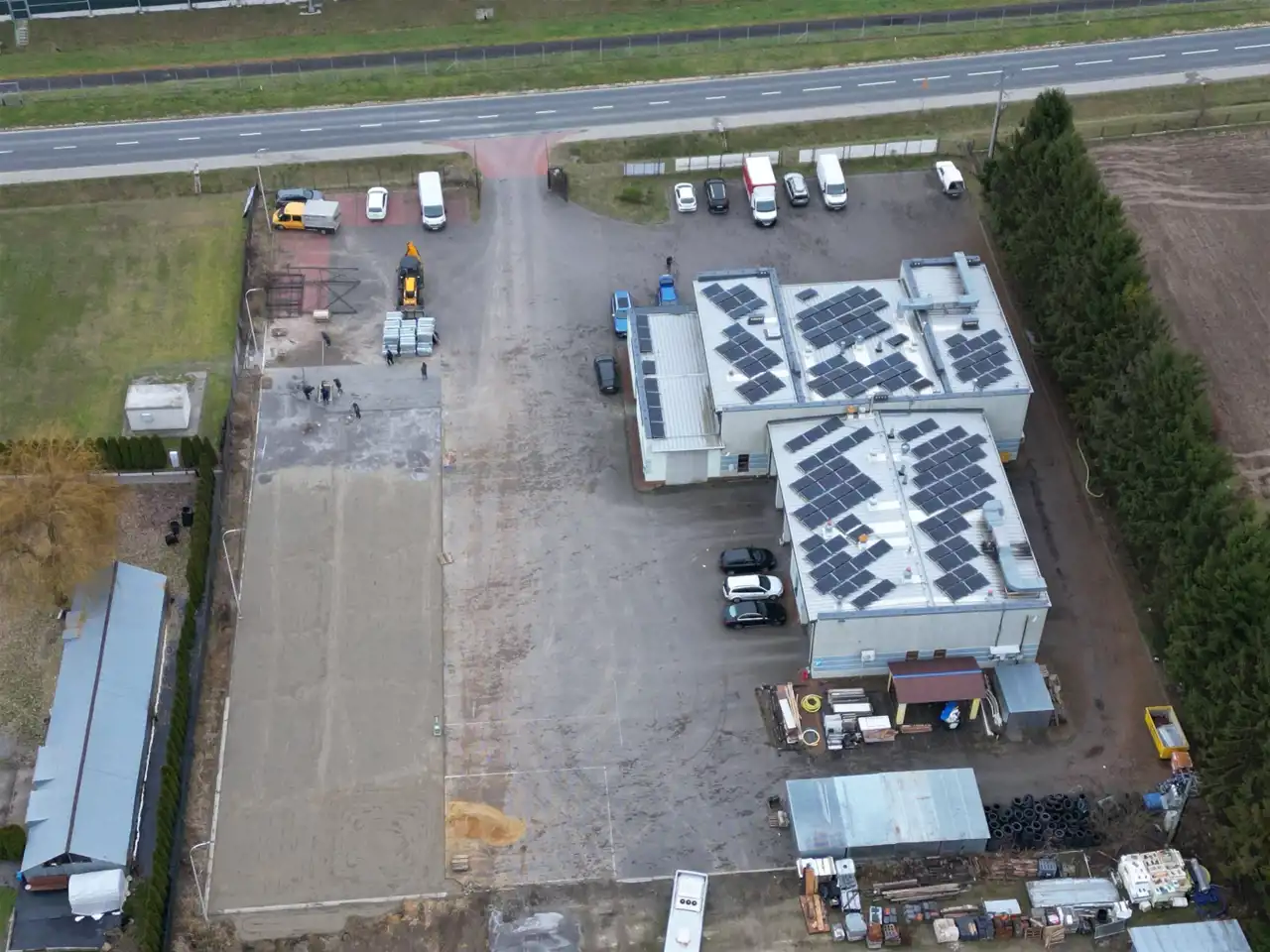 Na terenie znajduje się fotowoltaika oraz światłowód,