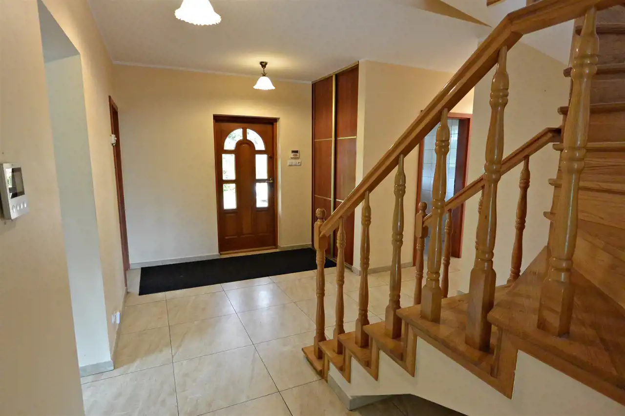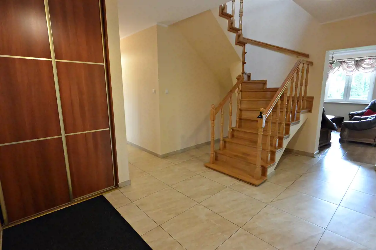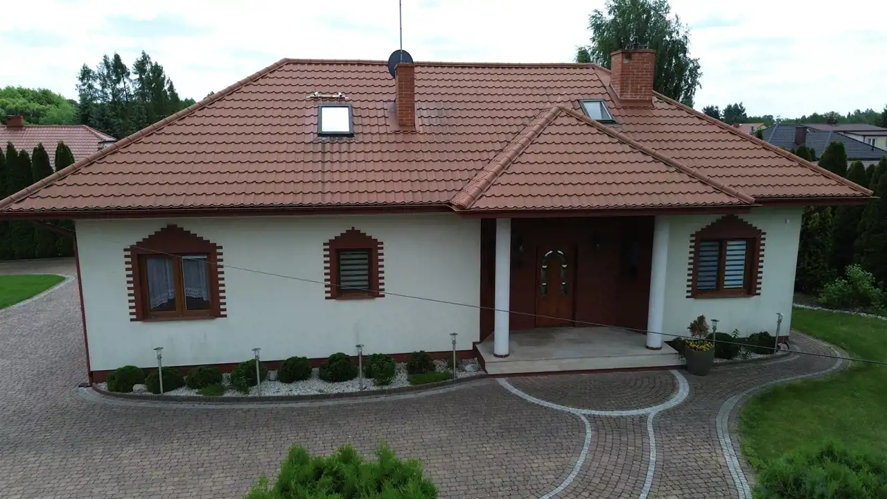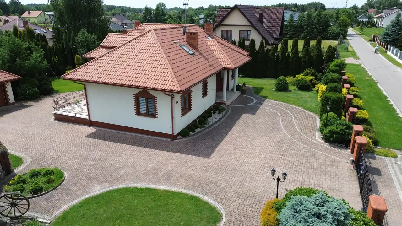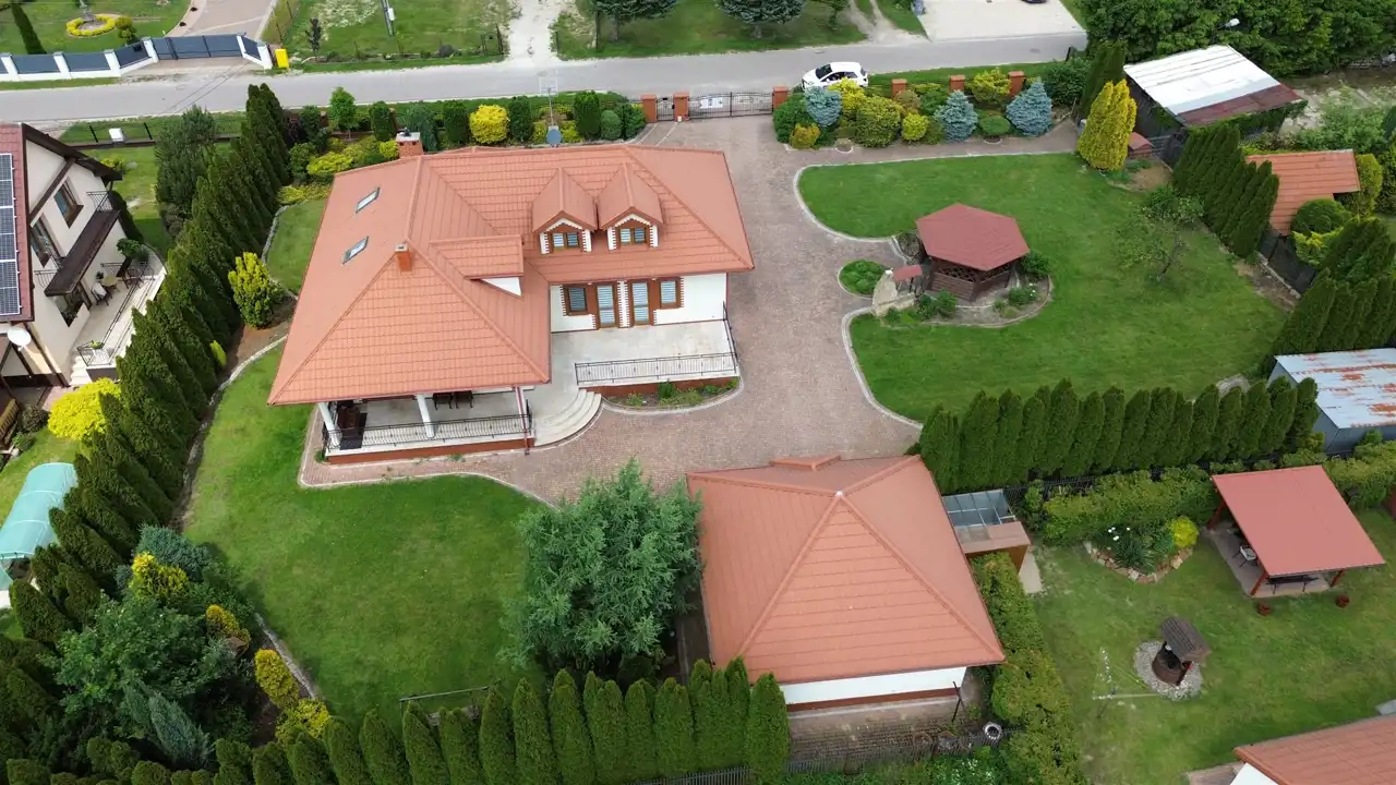 Dom wyposażony w instalacje: alarmowe, pod monitoring, Internet światłowodowy, czujniki przeciwpożarowe, rolety wewnętrzne dzień/noc, moskitiery, drzwi antywłamaniowe, domofon, sprzęt AGD oraz w pełni umeblowany, sprzedawany z całym wyposażeniem widocznym na zdjęciach. Brama wjazdowa i garażowa otwierane automatycznie na pilota.