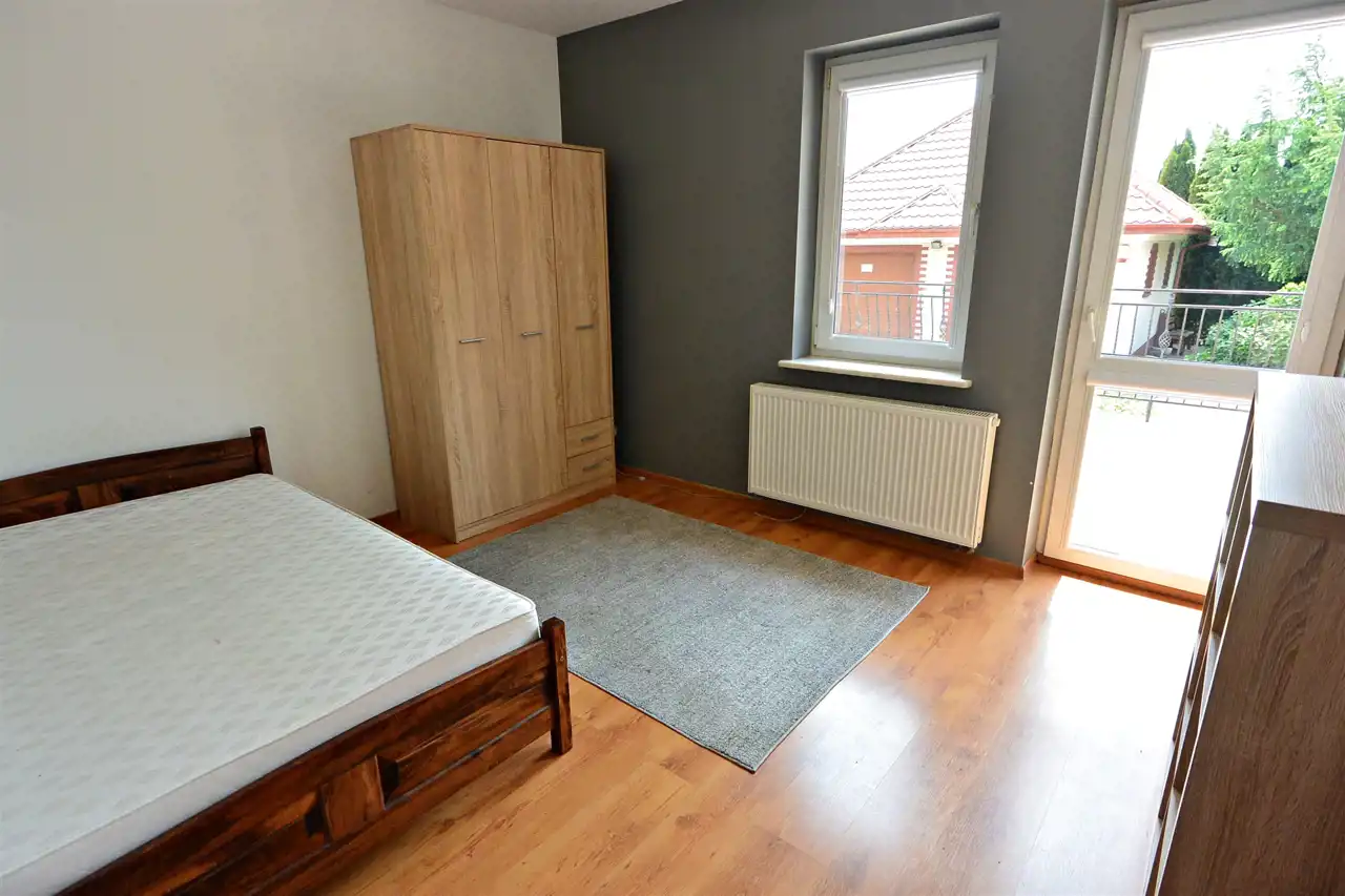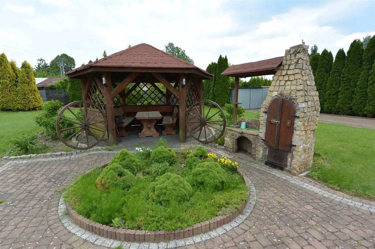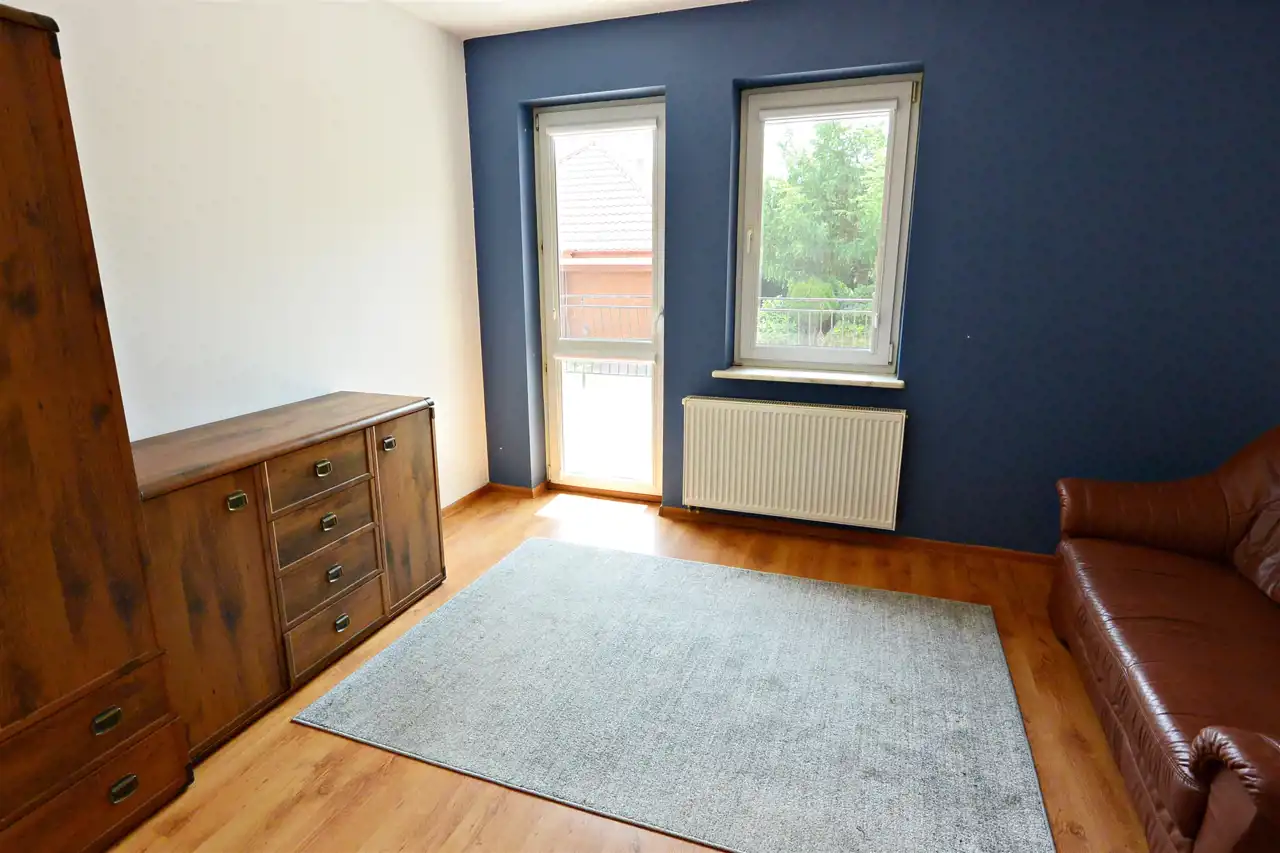 The living room is well-lit, with southern exposure. Access to a large approx. 60 m² terrace with granite flooring is available from the living room and two bedrooms. A fireplace can be installed in the living room. The well-maintained property features a 15-year-old garden with numerous ornamental plantings and an oak gazebo.