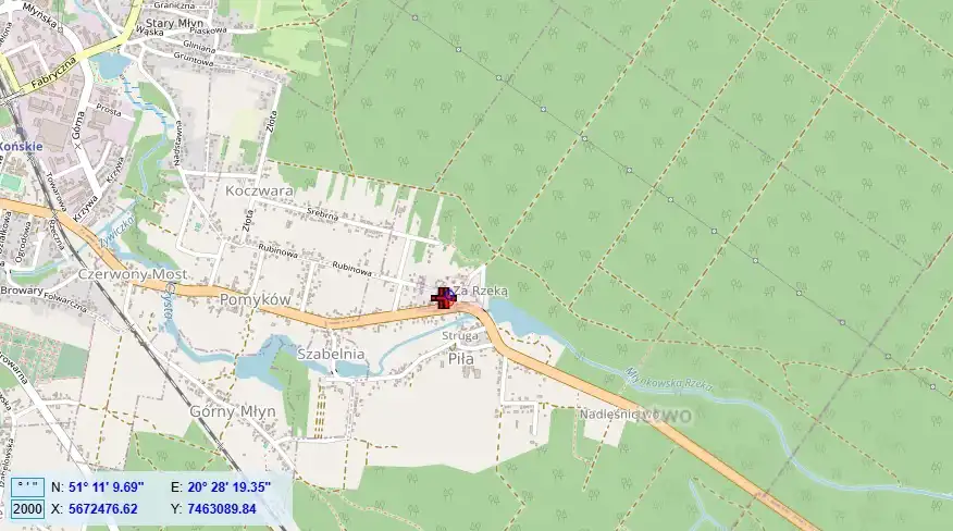 The property is situated in a picturesque and peaceful area, surrounded by single-family houses and green spaces, directly adjacent to forests and the Czarna River, offering exceptional natural surroundings. A nearby reservoir provides an ideal spot for relaxation and outdoor activities. The attractive location combines the charm of nature with convenient access to infrastructure—thanks to the proximity of national road no. 42, there is quick and easy access to Końskie and other nearby towns.