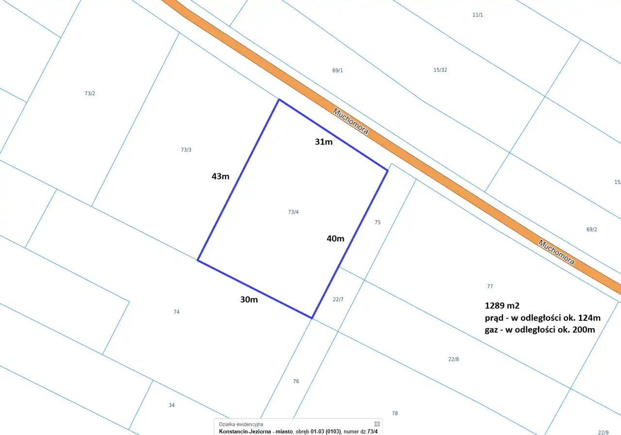 - Media Woda: brak; Kanalizacja: brak; Prąd: w ulicy; Gaz: w ulicy