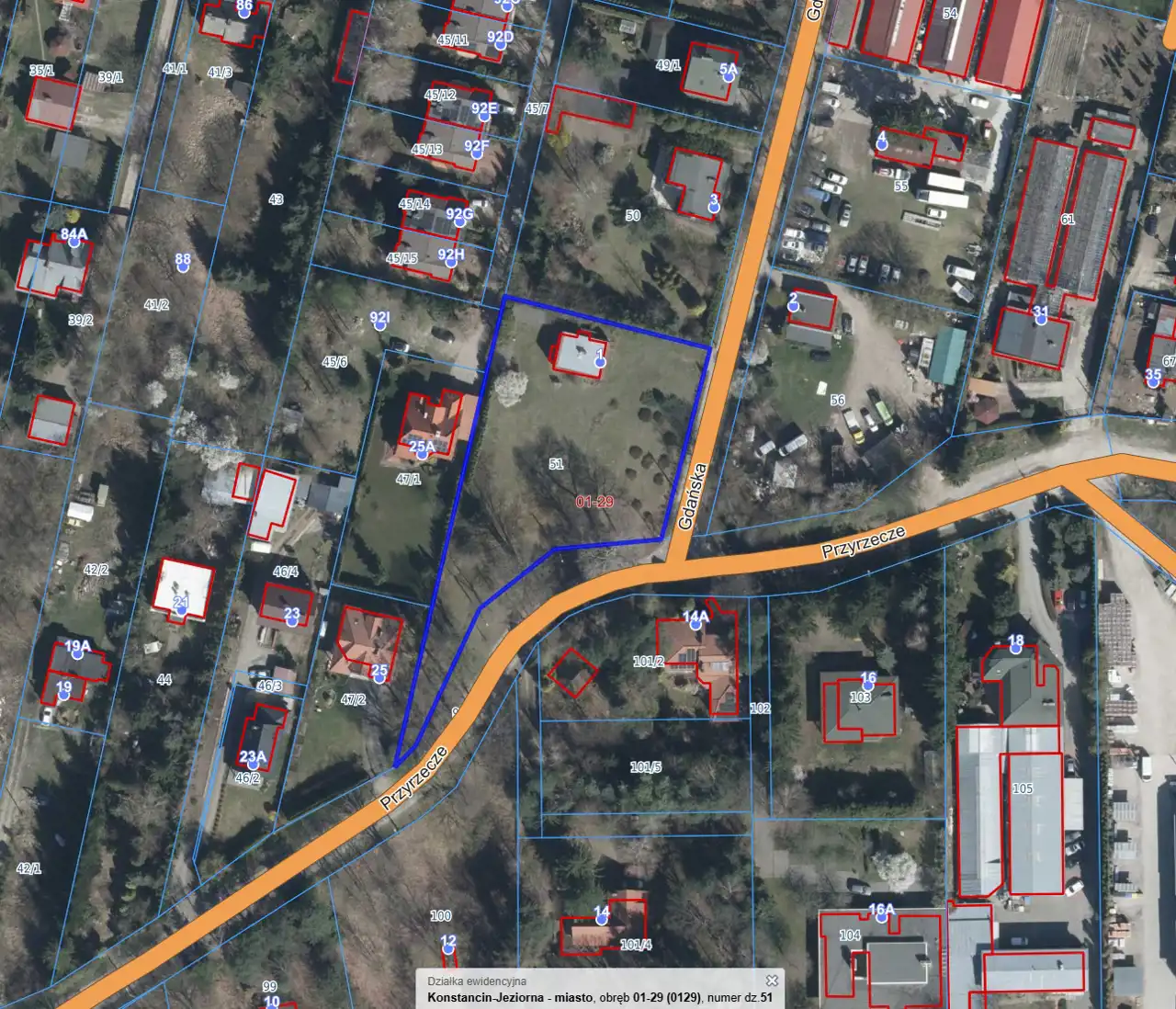 - Działka częściowo zagospodarowana, pochyła, nieregularny