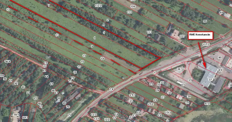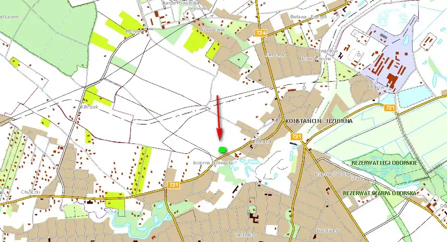 Działka rolna o łącznej powierzchni 25 066 m2, nie objęta MPZP. Zlokalizowana w strefie „B” ochrony Uzdrowiska Konstancin, w rejonie Zakładu Energetycznego Jeziorna. Bezpośredni dostęp do drogi publicznej relacji Jeziorna-Piaseczno