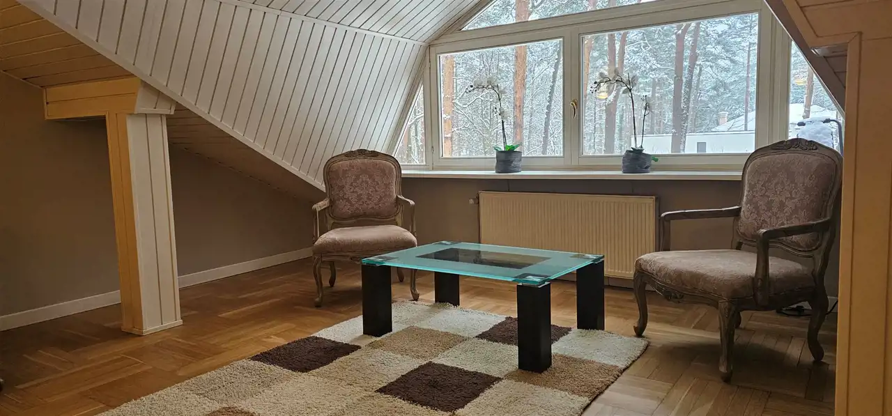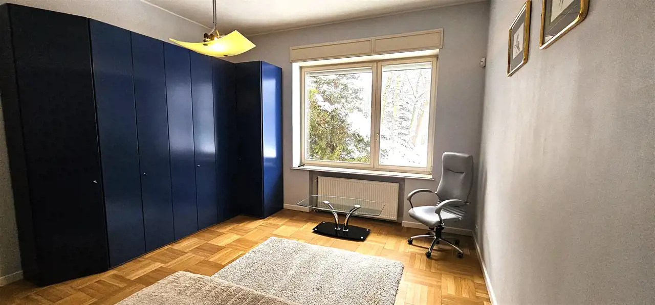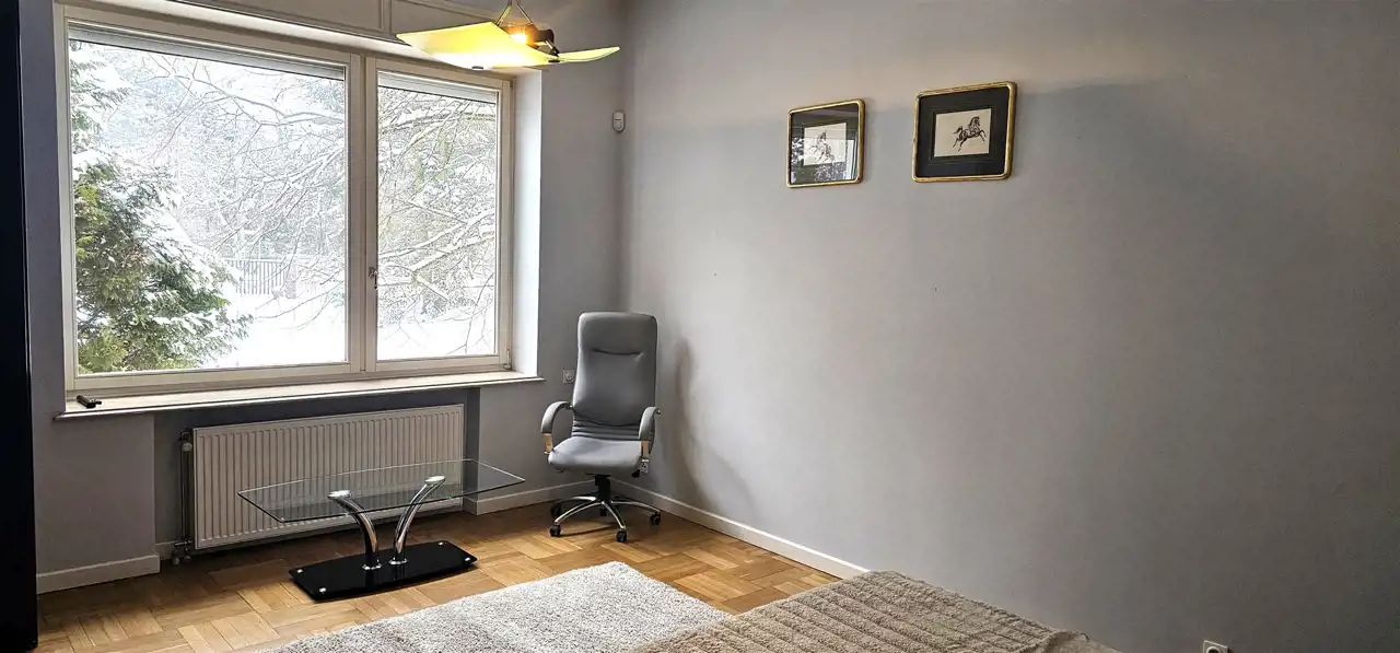 Willa z ogrodem w urokliwym i cichym rejonie Konstancina-Jeziornej, posiada pełne umeblowanie, wysoki standard wykończenia, ogrzewany basen wewnętrzny, część rekreacyjną oraz salę idealną pod organizacje przyjęć. Na poziomie ziemi znajduje się widna i nowocześnie urządzona kuchnia, trzy sypialnie, gabinet, dwie łazienki, w tym jedna z pokojem kąpielowym, 100 m salon z częścią jadalną i wyjściem na taras. Na poziomie pierwszym trzy sypialnie, otwarta część idealna pod gabinet, garderoba, dwie łazienki, reprezentacyjna klatka schodowa wykończona marmurem. W piwnicy część rekreacyjna, z sauną, jaccuzzi, pokojem wypoczynkowym, łazienką i schodami bezpośrednio na basen, a także salonik myśliwski z barem i kominkiem, dodatkowo szatnia, łazienka, pomieszczenia gospodarcze, garaż i w pełni wyposażona kuchnia gospodarcza. Przepiękny, zadbany ogród, okna wyposażone w automatyczne rolety, idealna letnia rezydencja. Dodatkowo najemca ponosi koszt zużycia mediów wg. opłat licznikowych.