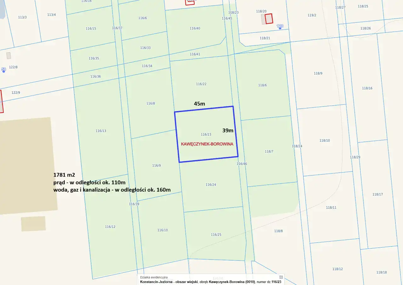 Działka znajduje się w odległości 14km od stacji PKP Piaseczno.