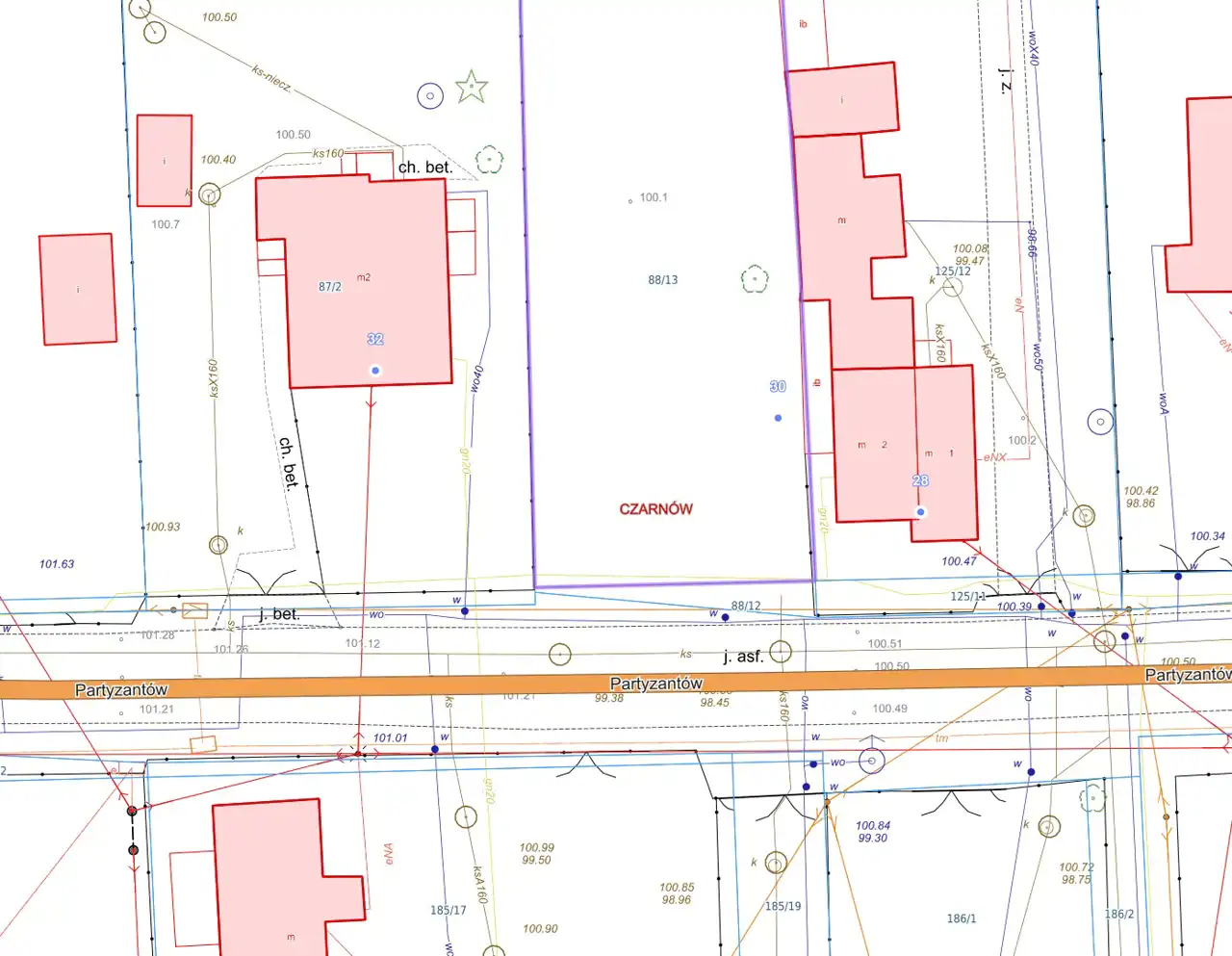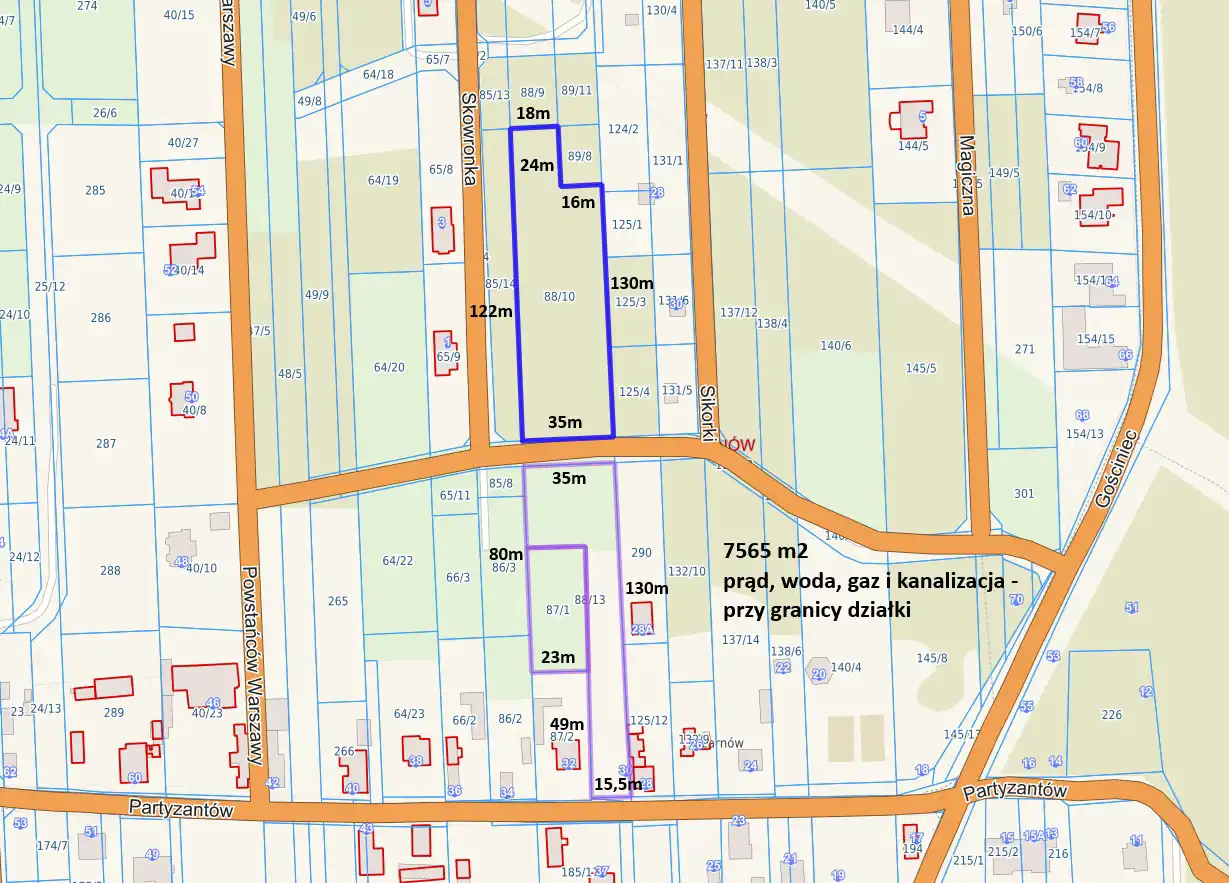 Prąd, woda, gaz i kanalizacja - w ul. Partyzantów przy granicy działki
