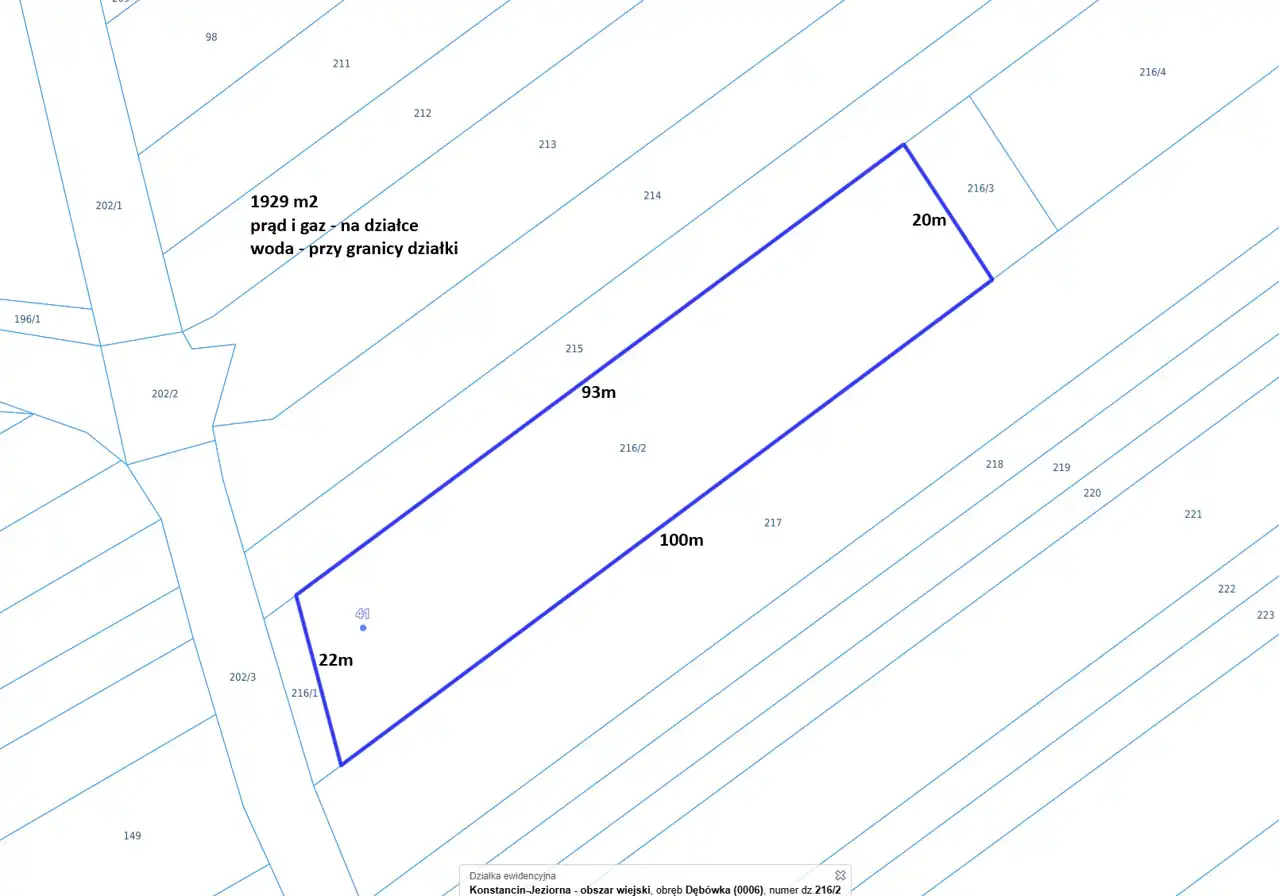 - Media Woda: w ulicy; Kanalizacja: brak; Prąd: na działce; Gaz: na działce