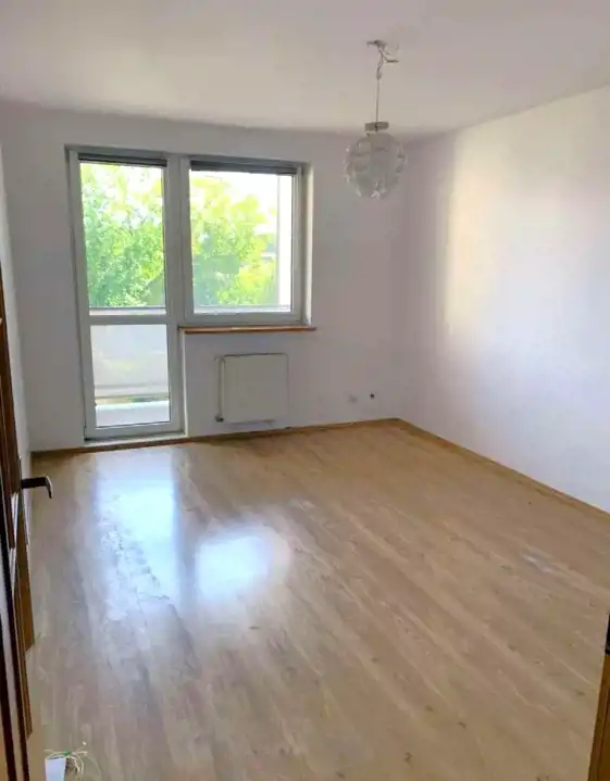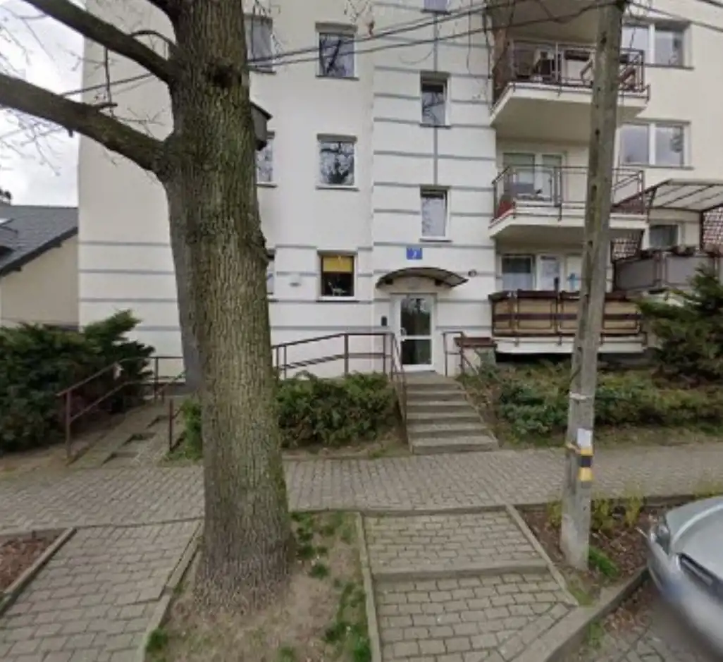 Mieszkanie o powierzchni 48 m² z dwoma niezależnymi pokojami, osobną kuchnią z oknem i balkonem wychodzącym na zielony trawnik/patio (teren niedostępny dla przechodniów). Lokal znajduje się na 1. piętrze w budynku bez windy, zarządzanym przez spółdzielnię.
