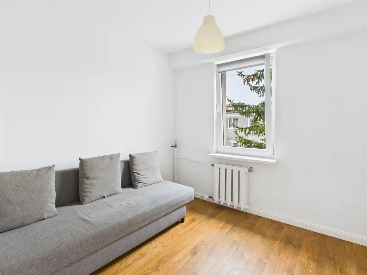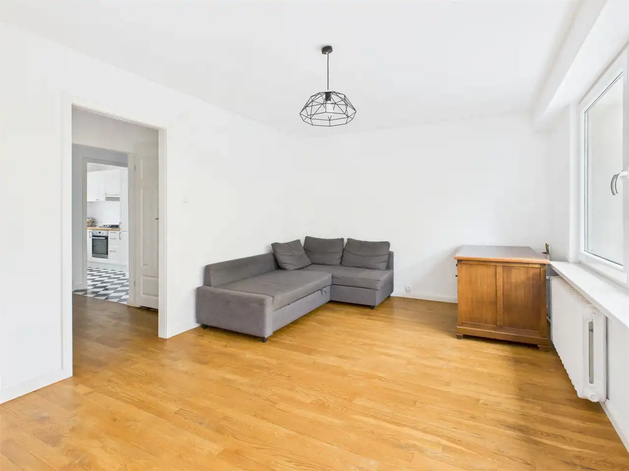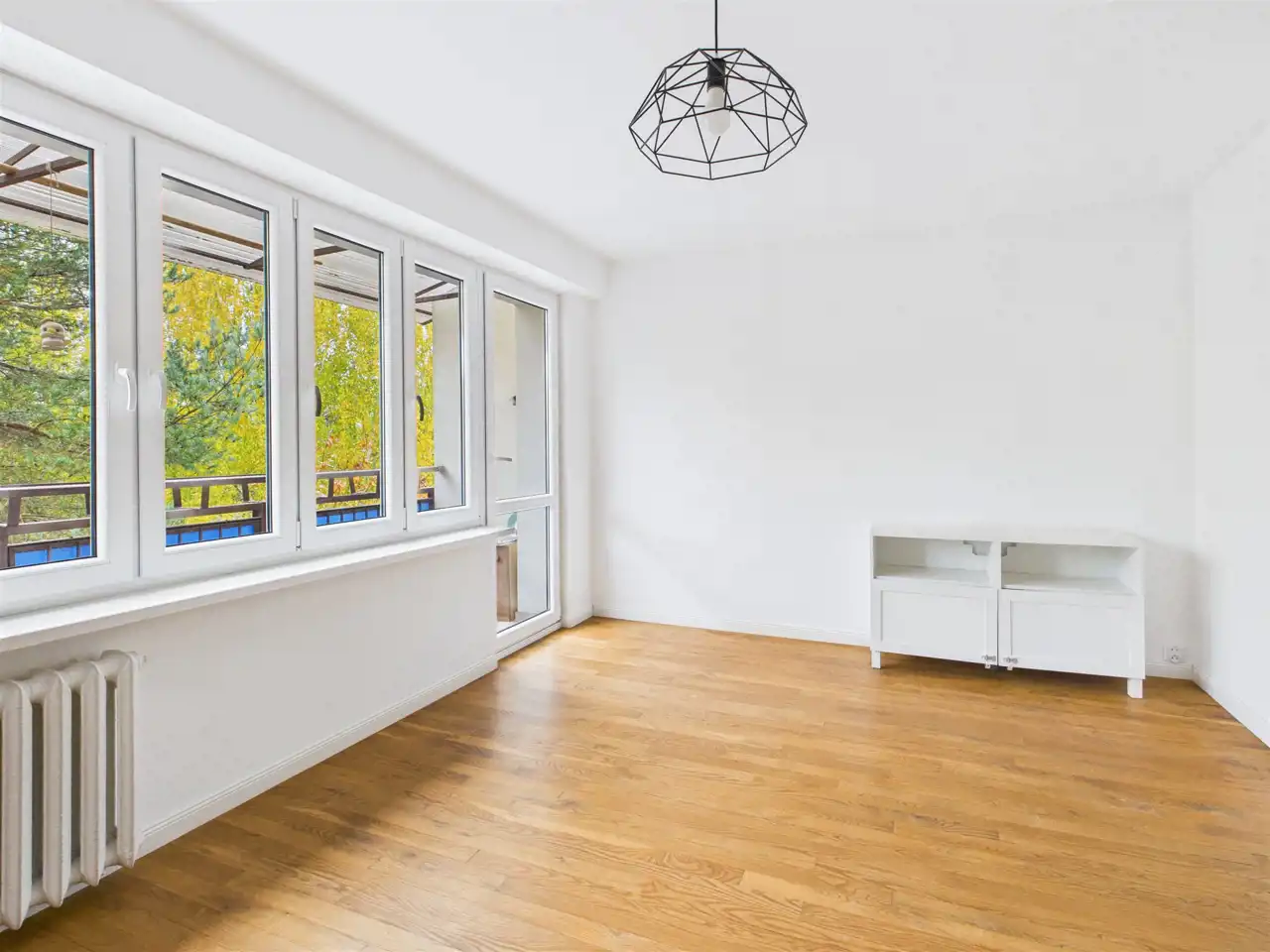Głównymi atutami nieruchomości są dwustronny układ pomieszczeń, drewniane dębowe podłogi oraz balkon z widokiem na zieleń.