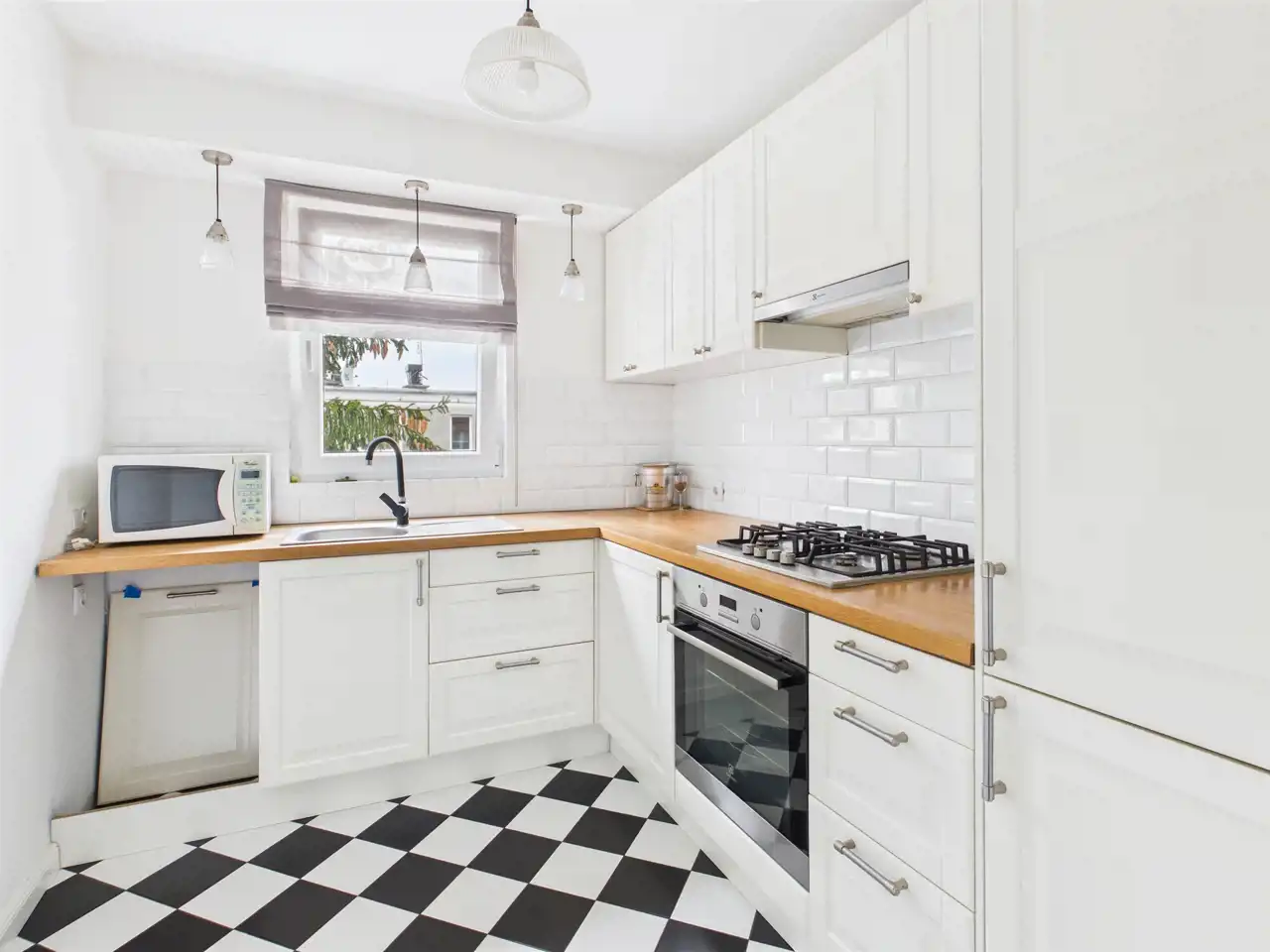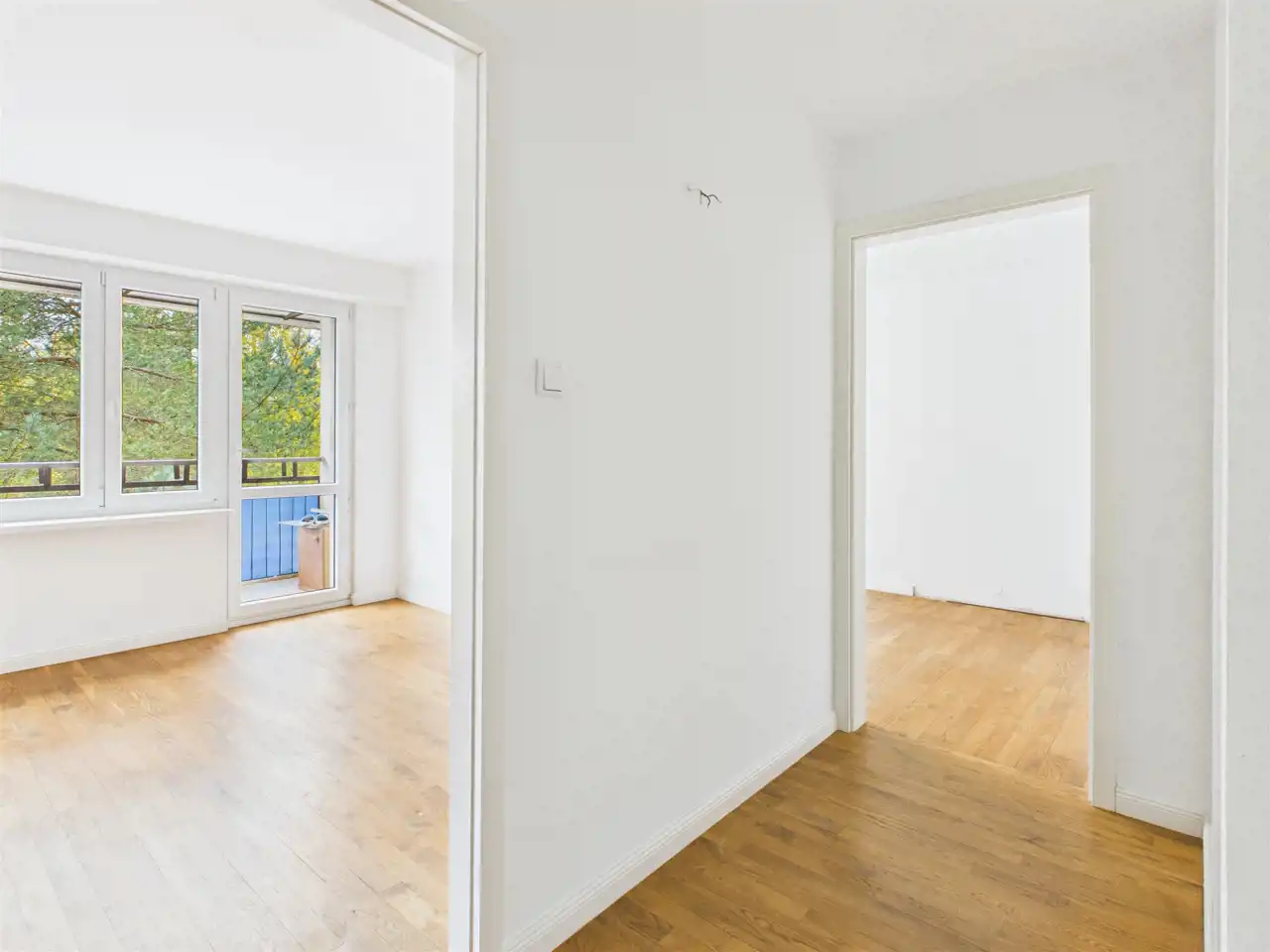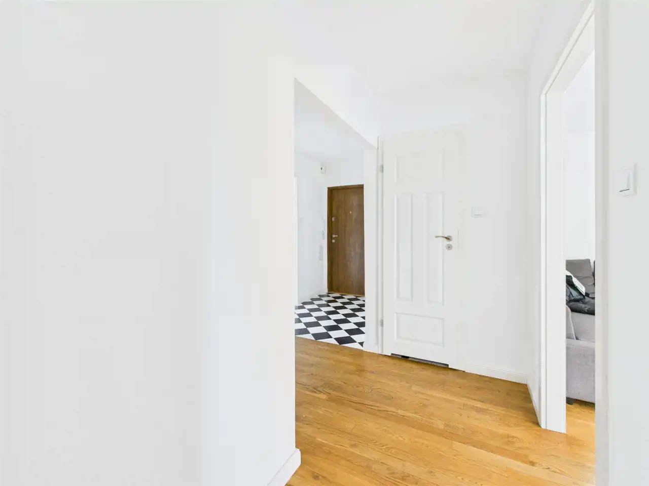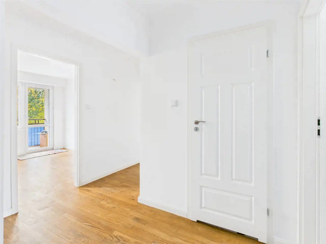 Głównymi atutami nieruchomości są dwustronny układ pomieszczeń, drewniane dębowe podłogi oraz balkon z widokiem na zieleń.