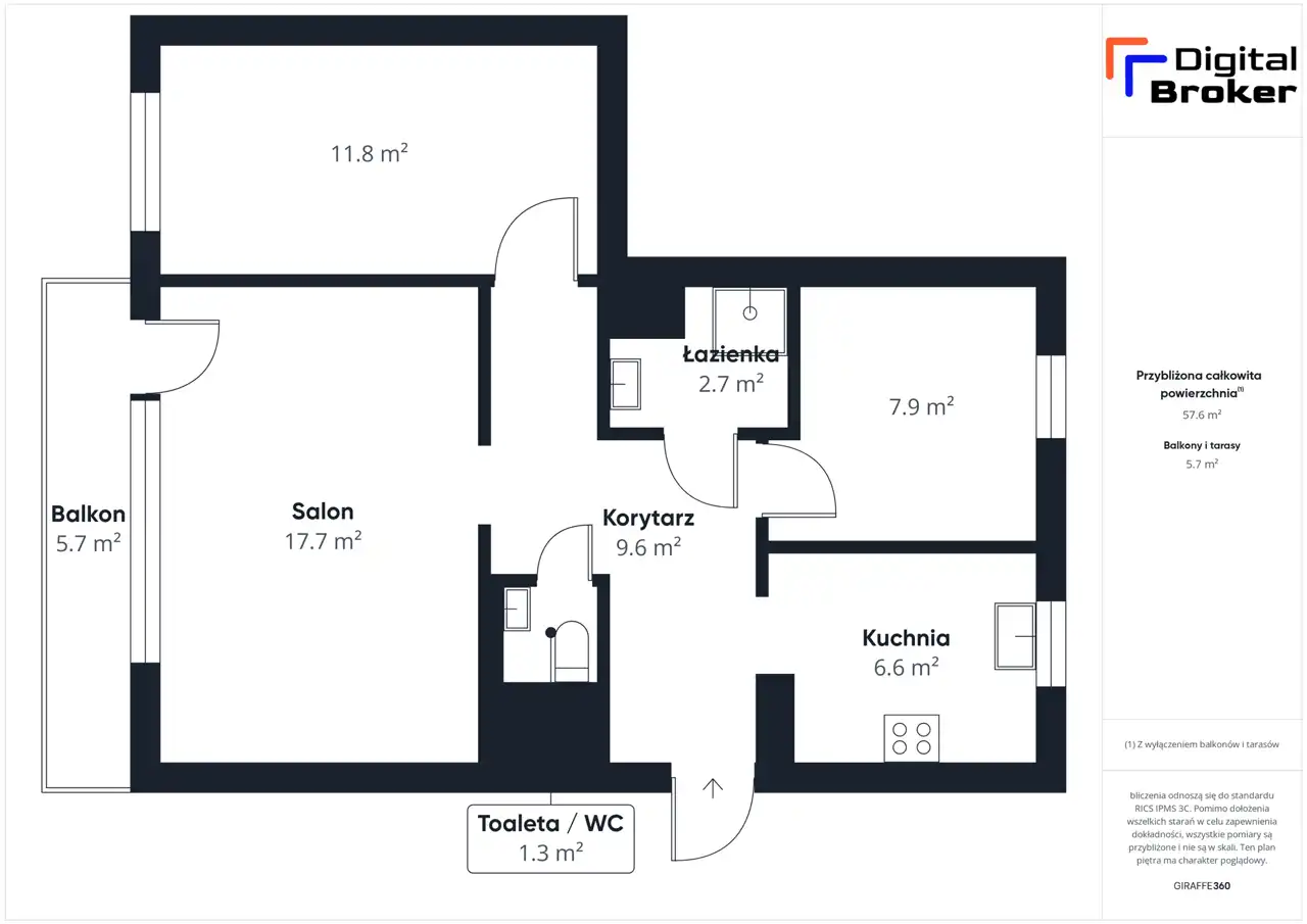 przestronny salon z wyjściem na balkon (5,7 m²),