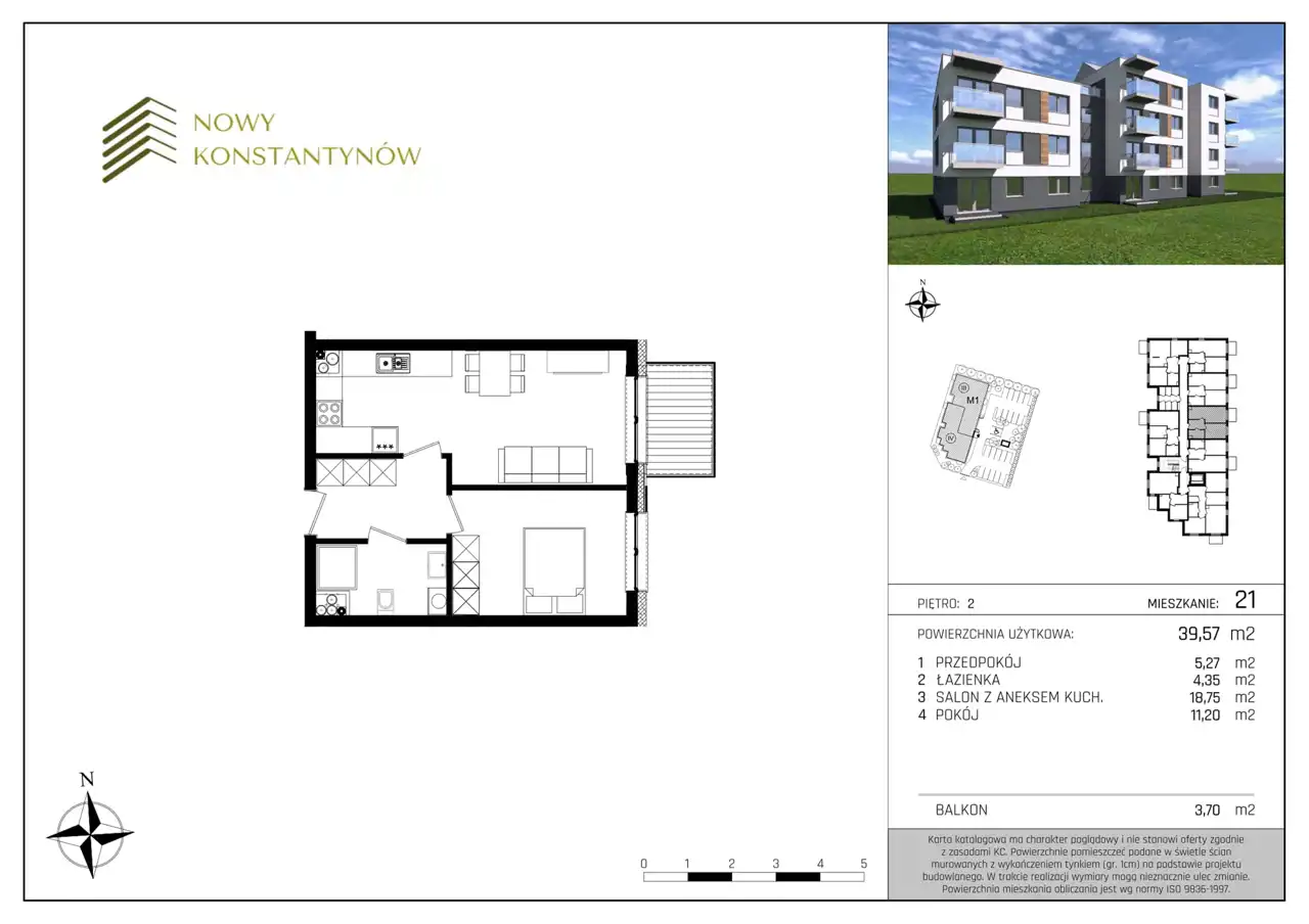 - Charakterystyka mieszkania 39.57 m2, 2 pokoje