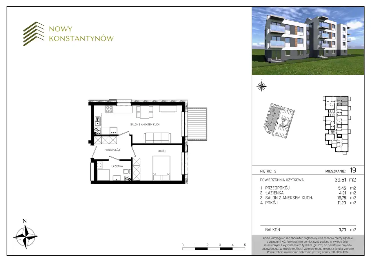 - Charakterystyka mieszkania 39.61 m2, 2 pokoje