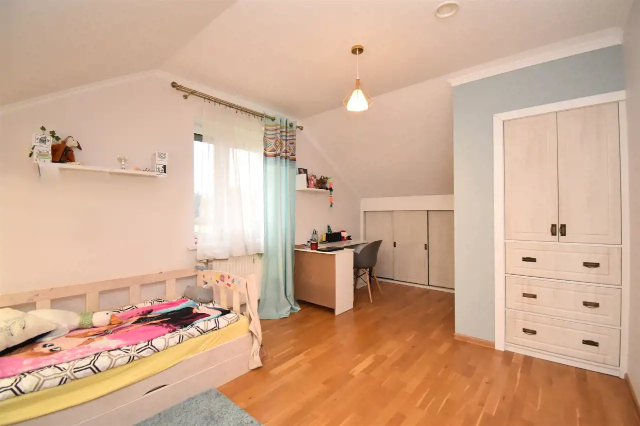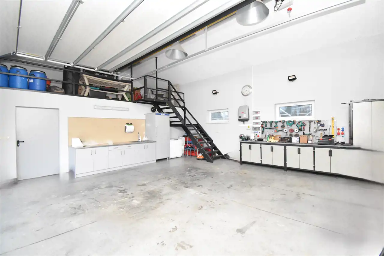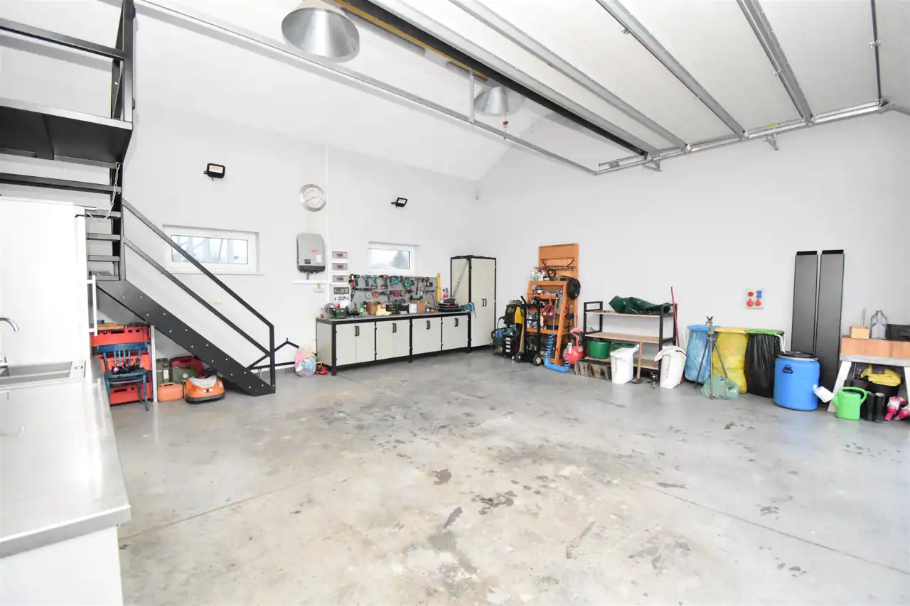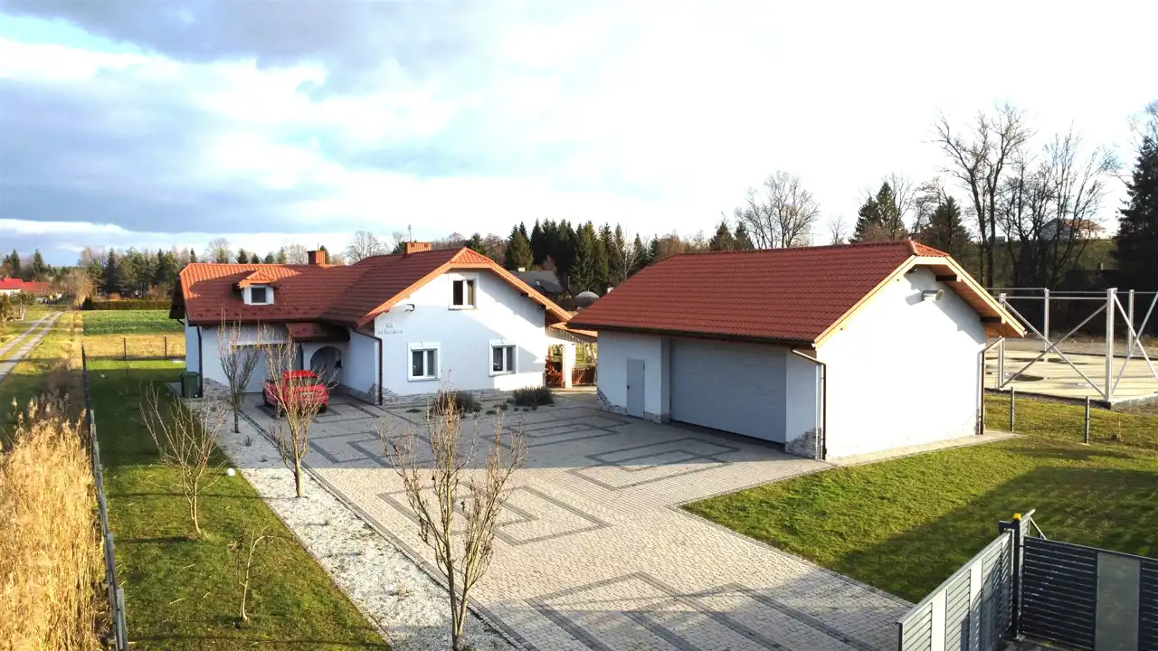 Budynek mieszkalny, dwukondygnacyjny (parter i poddasze mieszkalne) z garażem w bryle budynku oraz dużym budynkiem gospodarczym wybudowany został w 2014 roku. Staranność wykończenia i jakość użytych materiałów przekłada się na funkcjonalność, komfort i niepowtarzalny klimat prezentowanej nieruchomości.