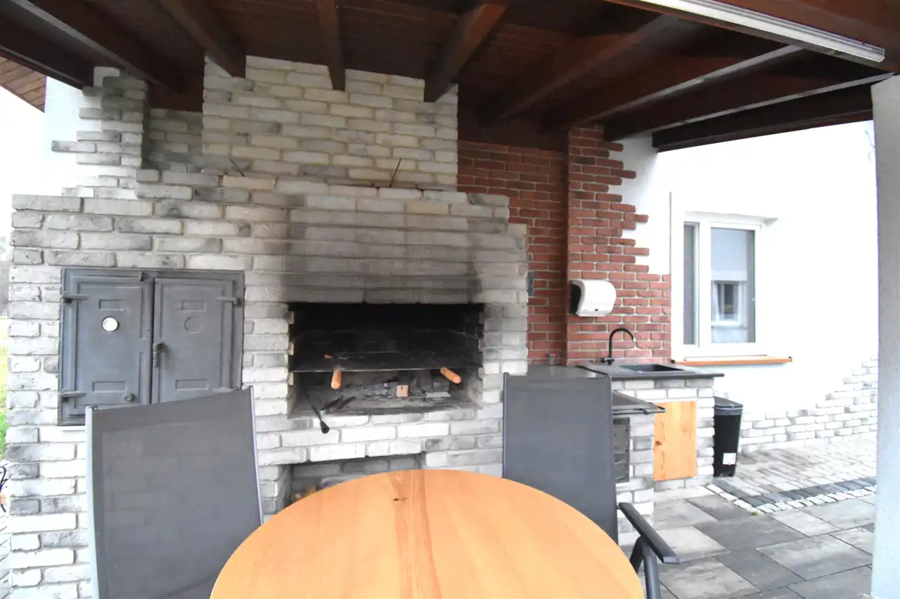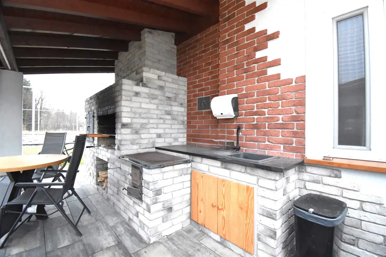 - Murowany grill ogrodowy z wędzarnią i kuchnią na drewno