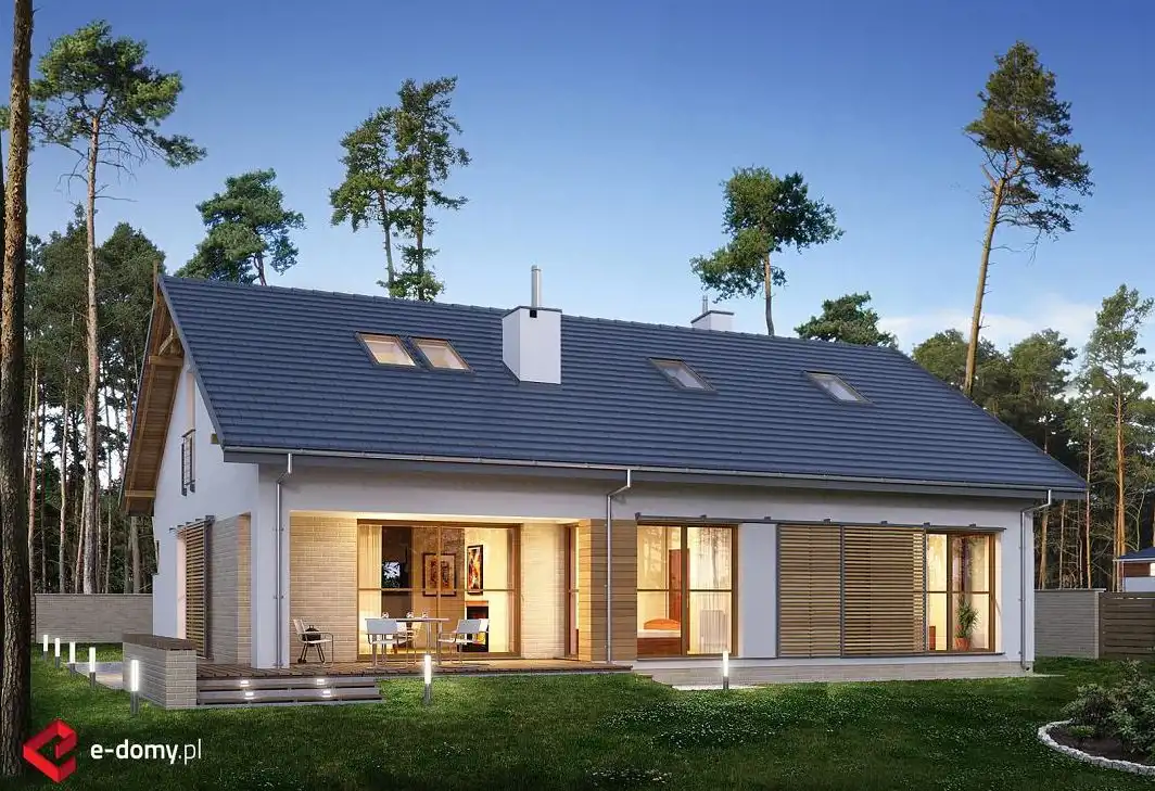 W sercu domu znajduje się duży salon z otwartą kuchnią i częścią jadalnianą – to przestrzeń sprzyjająca wspólnemu spędzaniu czasu. Dom został zbudowany w solidnej technologii z wysokiej jakości materiałów, co zapewnia trwałość oraz oszczędność w przyszłej eksploatacji.