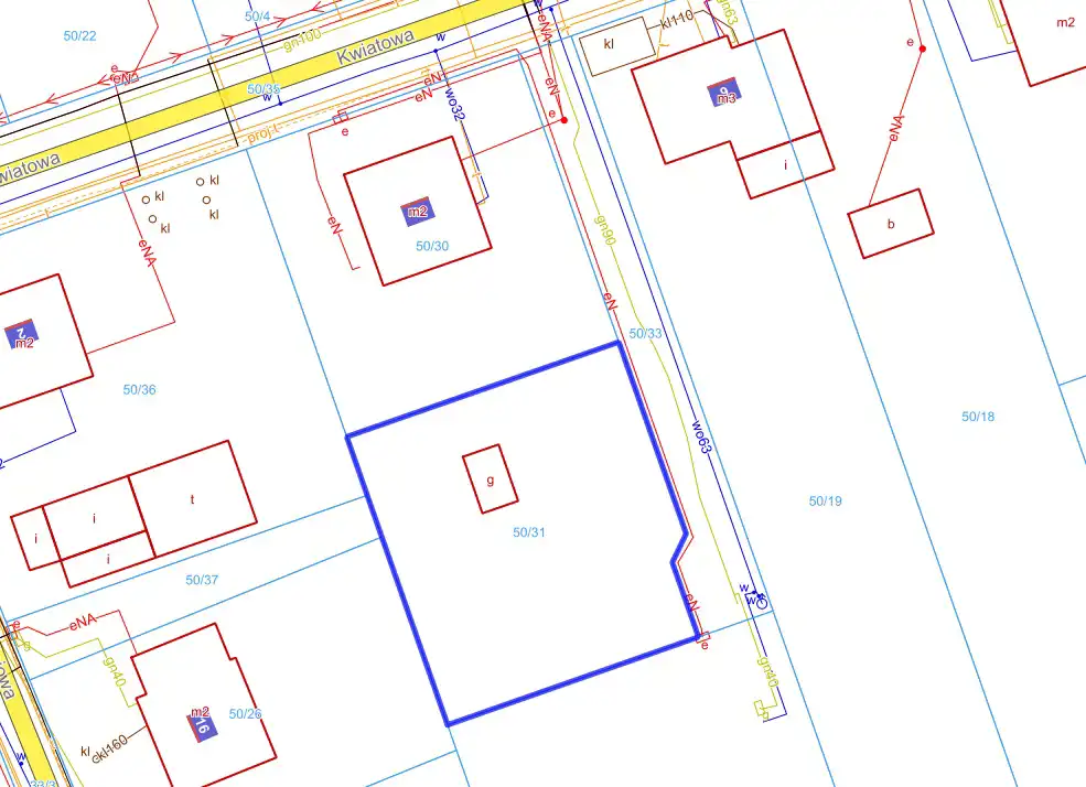 - Działka częściowo zagospodarowana, płaska, prostokąt
