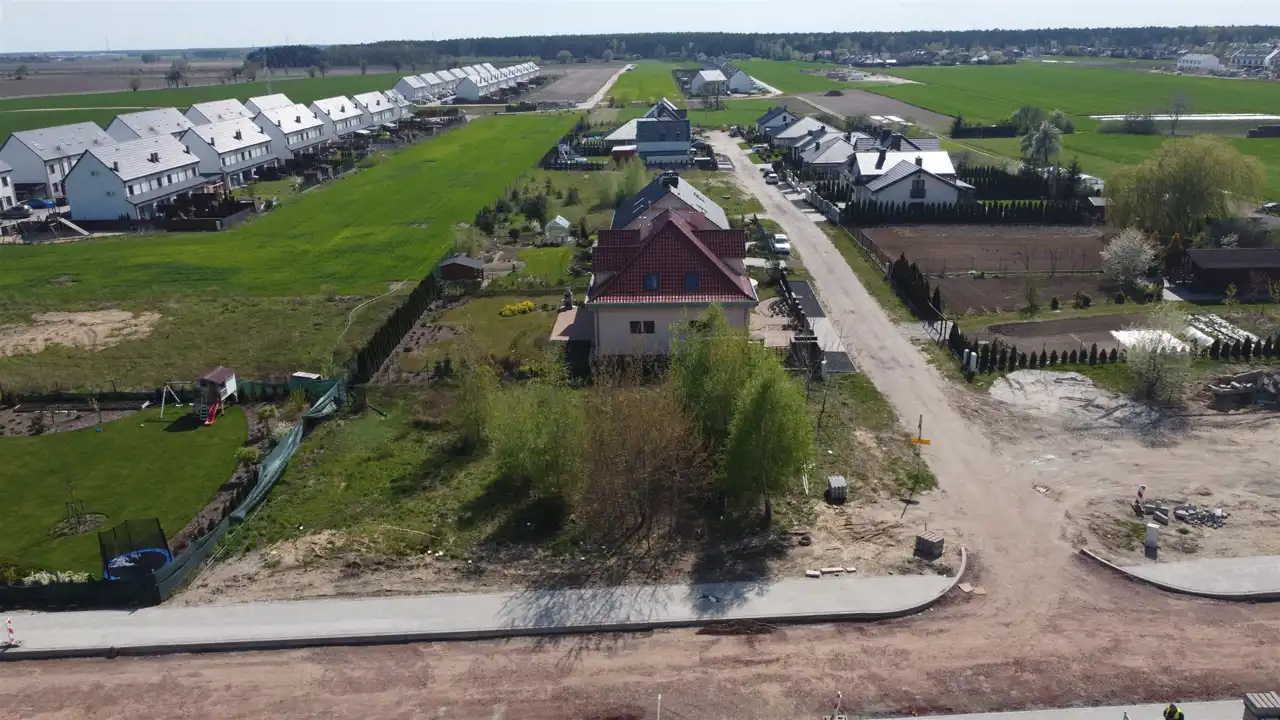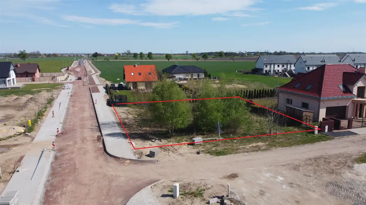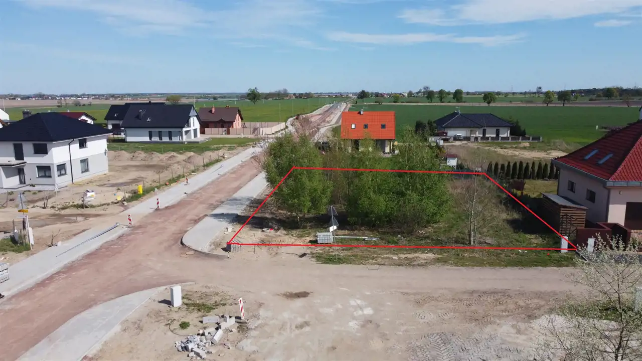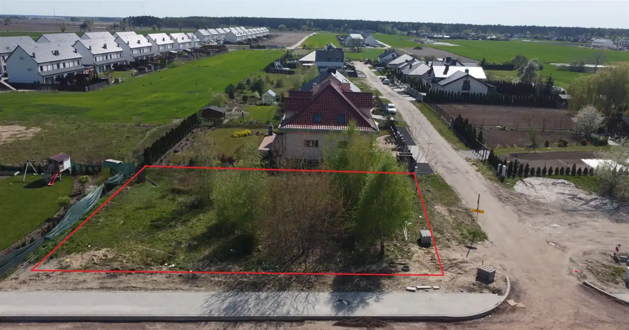 Komfortowa działka o powierzchni 926 m2. Płaska , w kształcie zbliżonym do kwadratu.