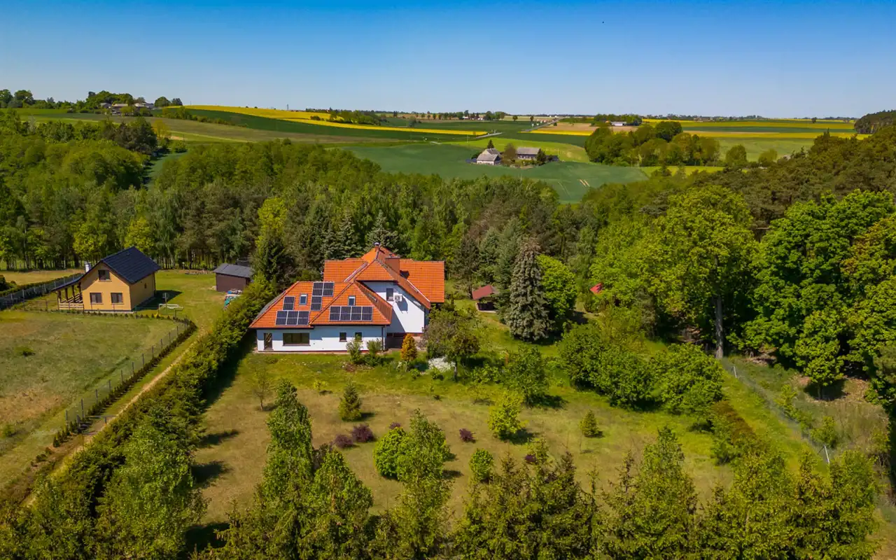 - **Ekologiczne ogrzewanie**: Piec na pellet oraz instalacja fotowoltaiczna na dachu pozwalają na oszczędne i ekologiczne użytkowanie domu.