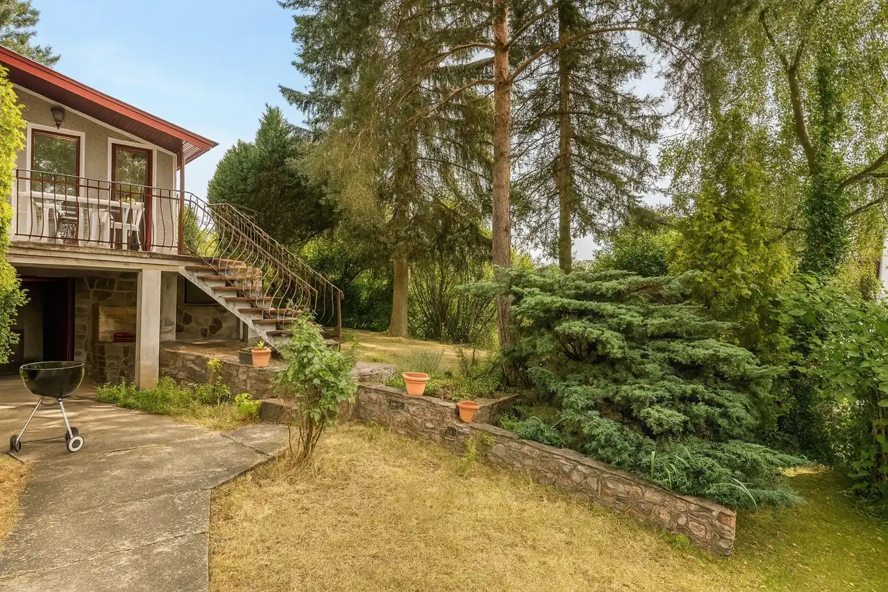 Działka jest ogrodzona, zadbana, nasłoneczniona, z wieloletnimi nasadzeniami (iglaki). Teren zagospodarowany, o kaskadowym ukształtowaniu. Nieruchomość znajduje się na lekkim wzniesieniu, co zapewnia prywatność, dobrą cyrkulację powietrza i atrakcyjny widok z tarasu.