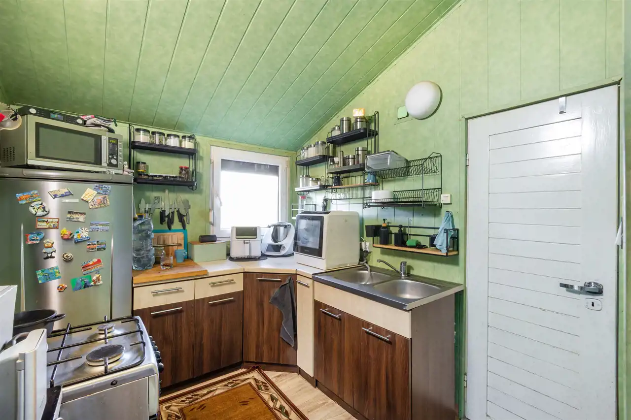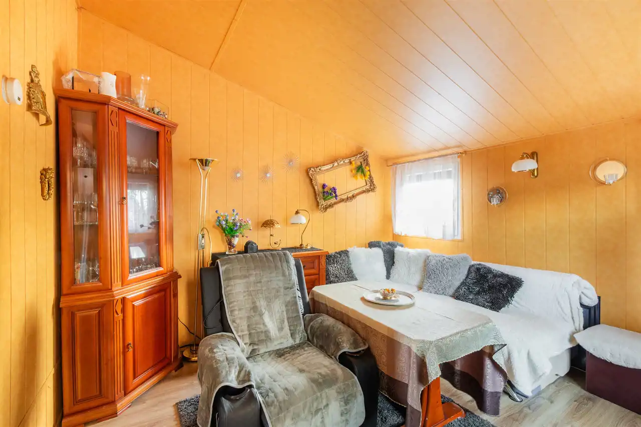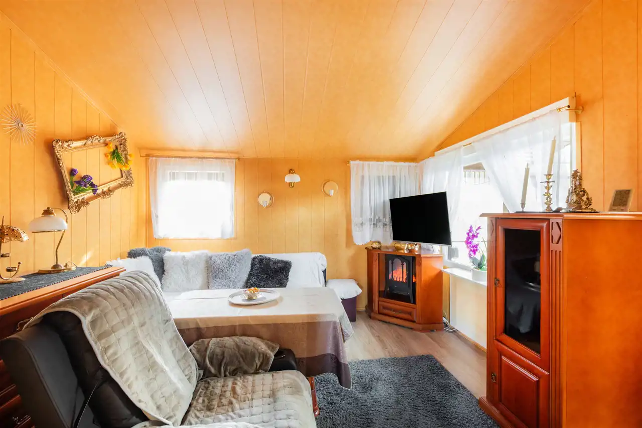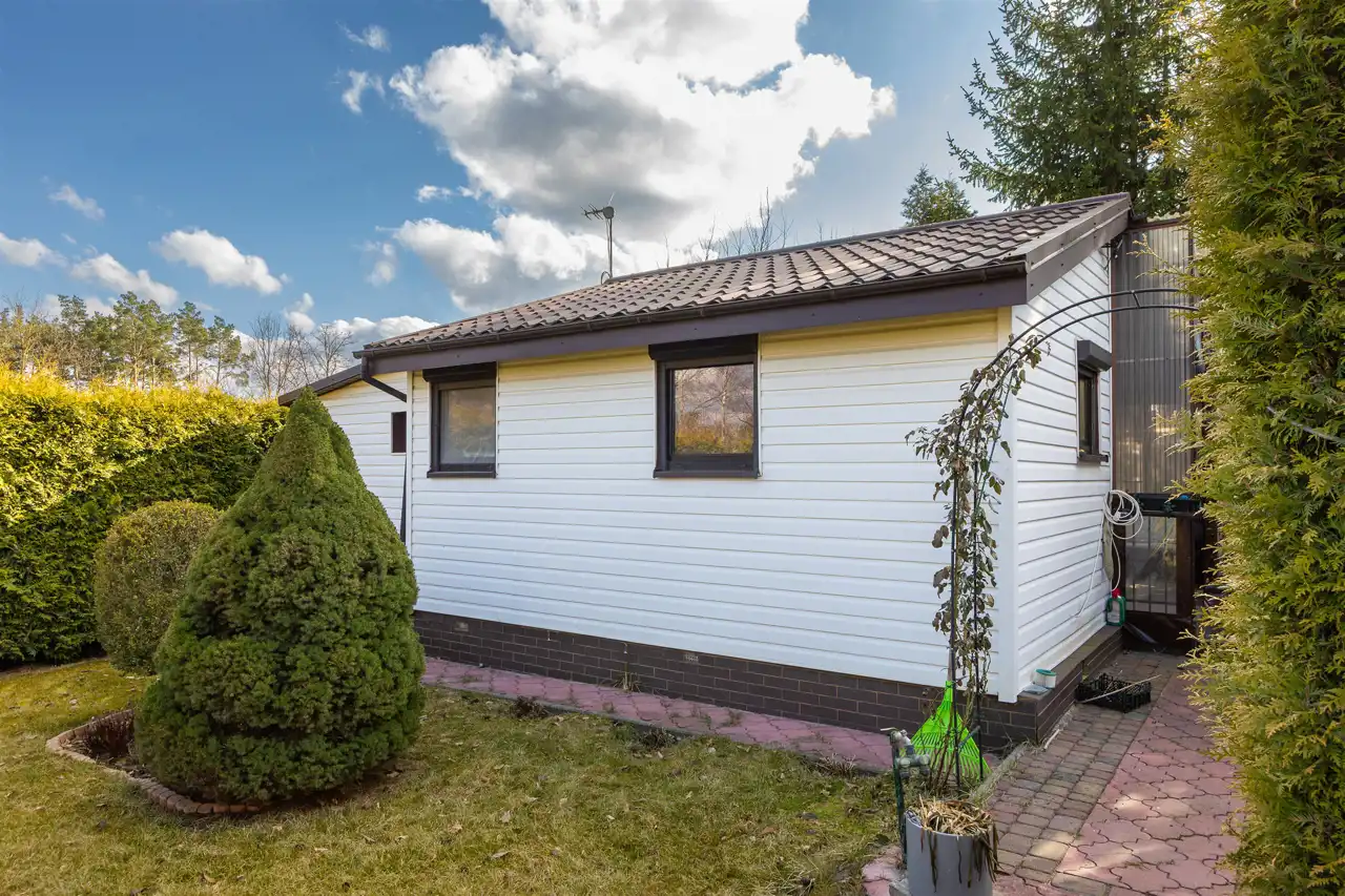 Na działce postawiono dom drewniany, ocieplony wolnostojący o powierzchni użytkowej 35 m2, z dobudowanym pomieszczeniem gospodarczym, gdzie zainstalowano zestaw hydroforowy.