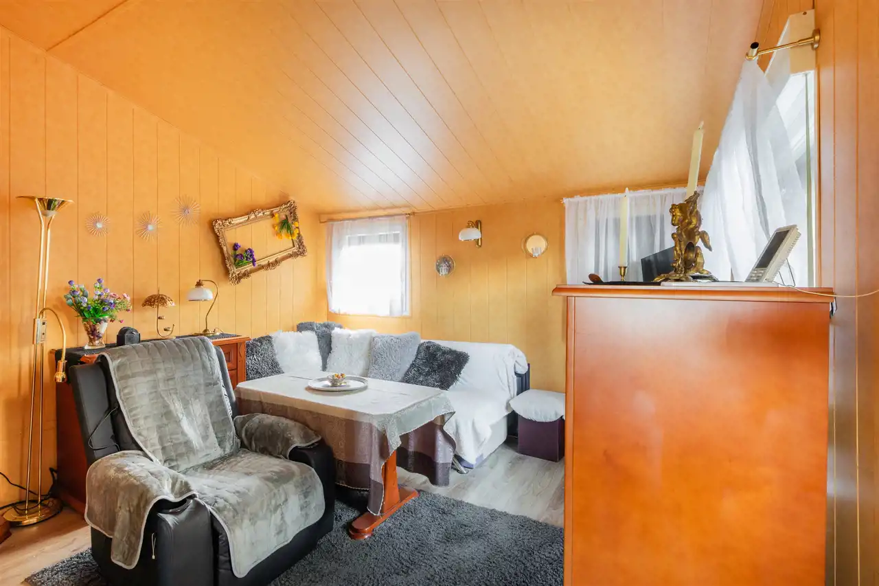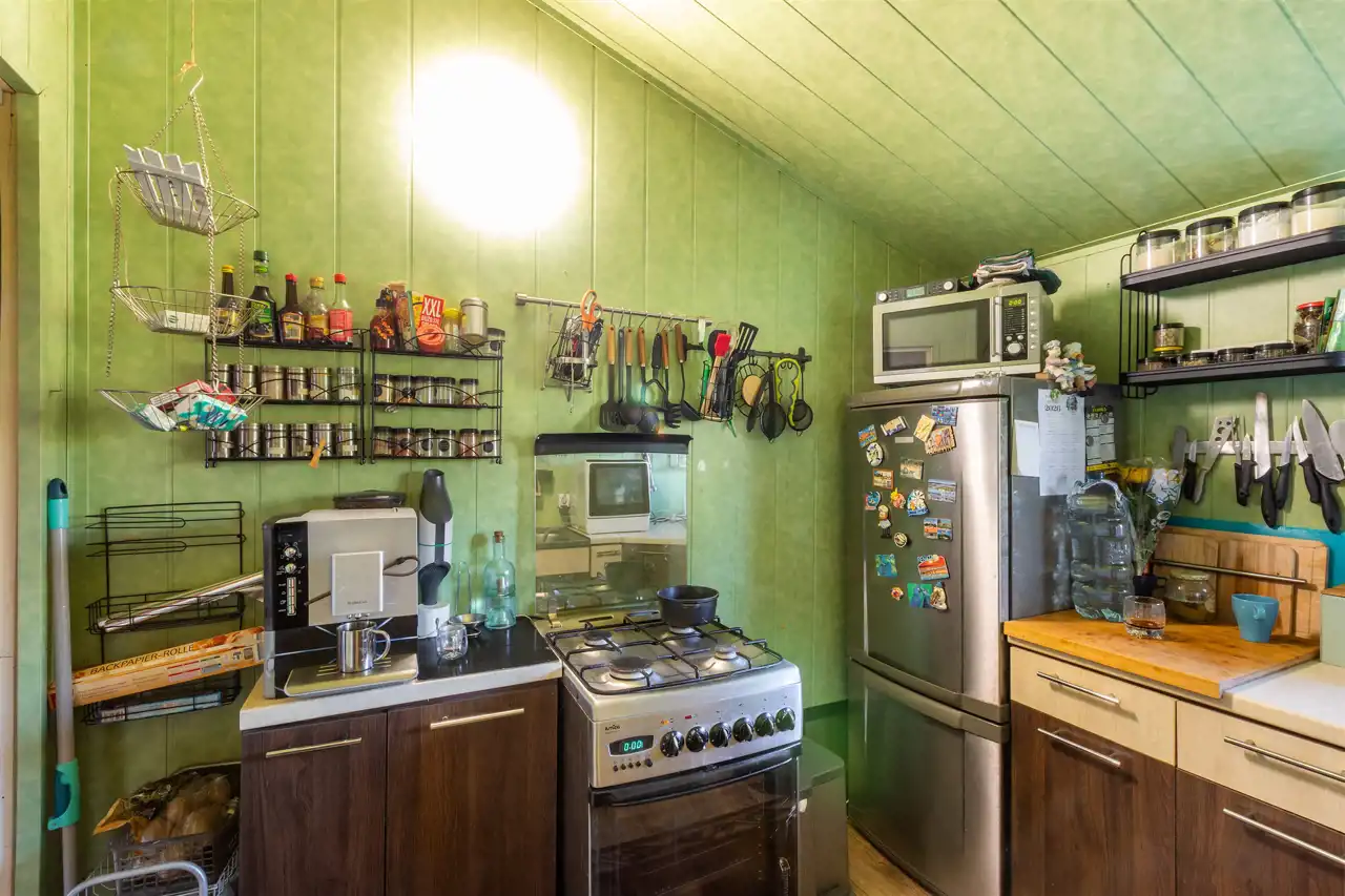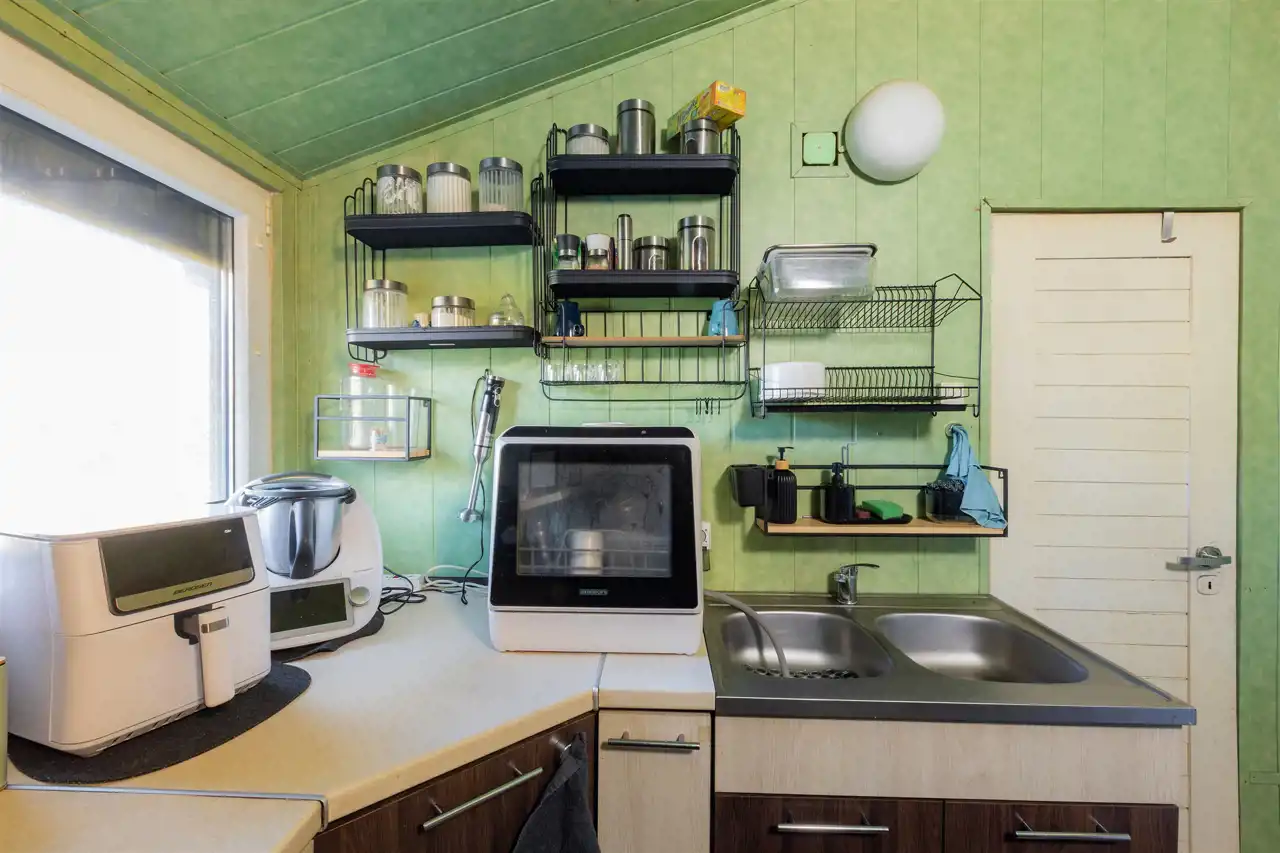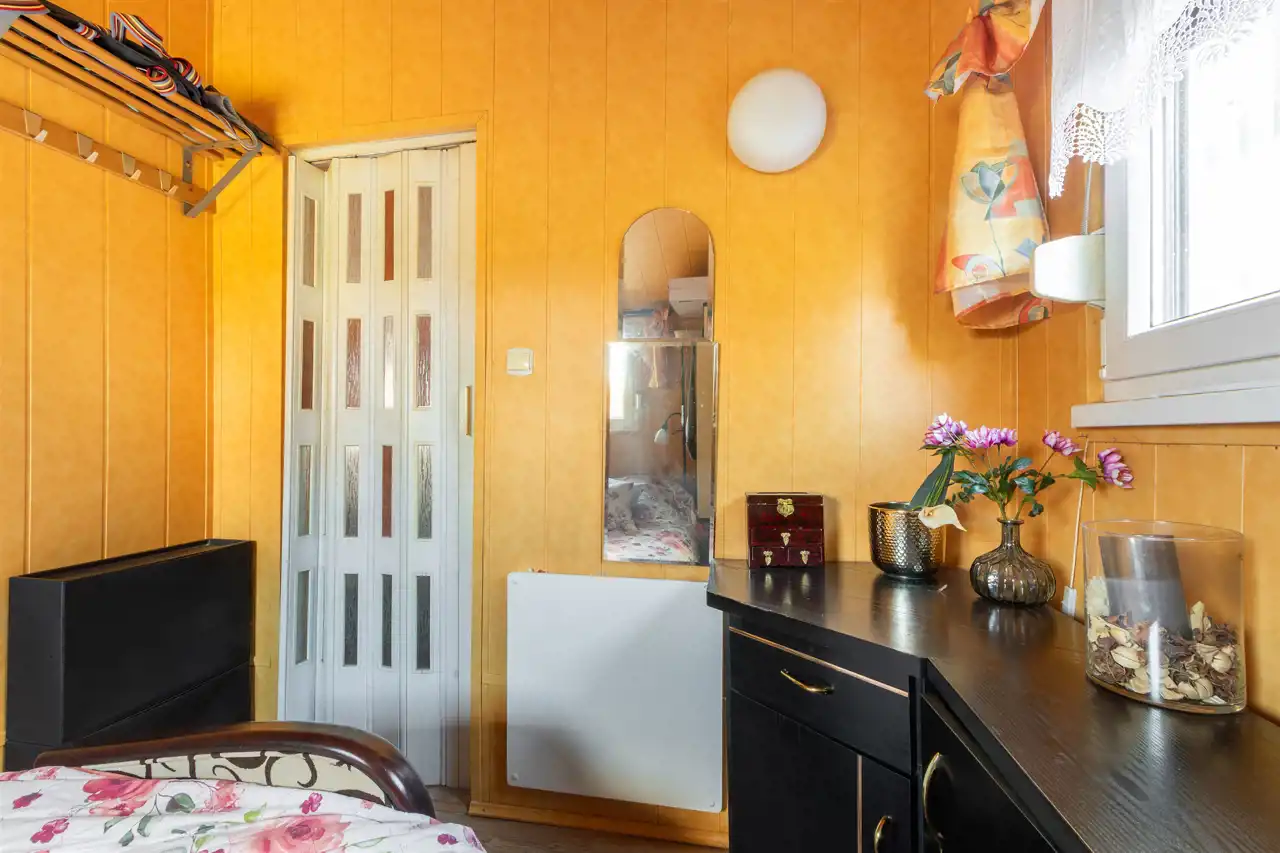 Na działce postawiono dom drewniany, ocieplony wolnostojący o powierzchni użytkowej 35 m2, z dobudowanym pomieszczeniem gospodarczym, gdzie zainstalowano zestaw hydroforowy.