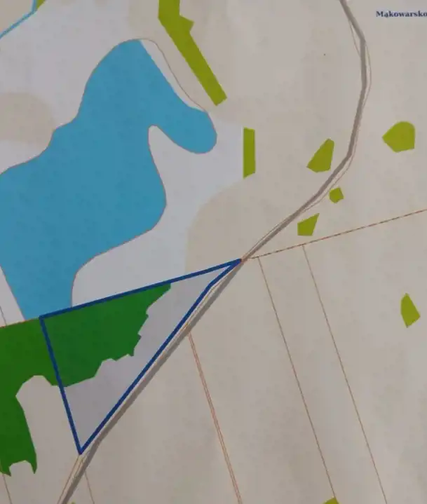 Nieruchomość ma powierzchnię 5,99HA i składa się z dwóch działek na pograniczu wsi Mąkowarsko i Lucim