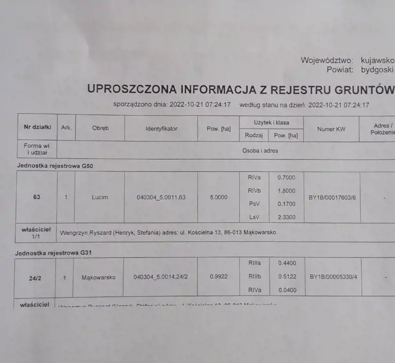 Grunty rolne dobrej i bardzo dobrej klasy /wypis z rejestru gruntów na ostatnim zdjęciu.