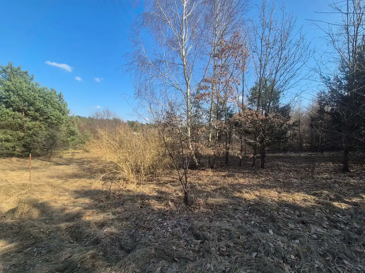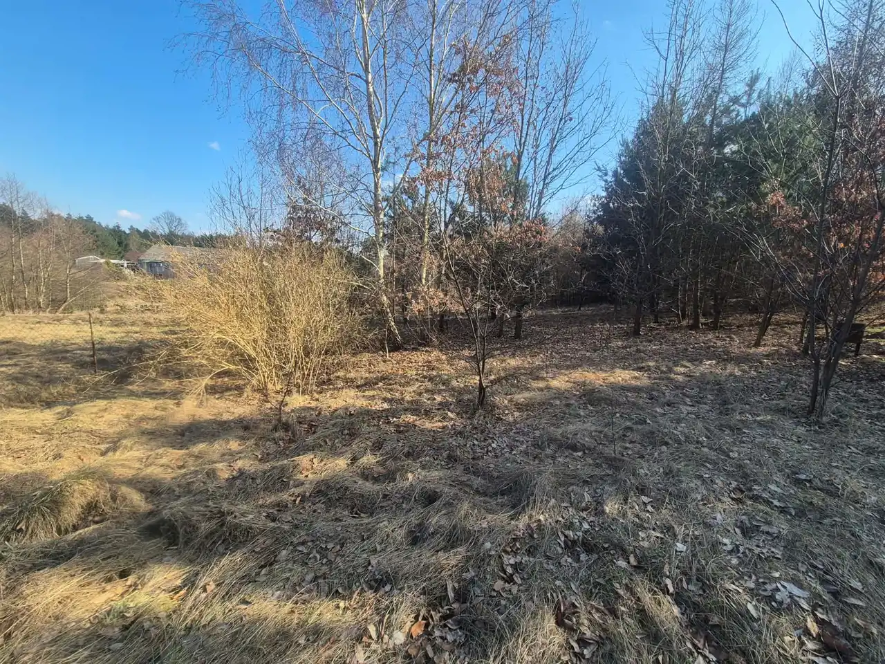Teren jest obecnie porośnięty krzewami, co daje przyszłemu właścicielowi możliwość aranżacji przestrzeni według własnej wizji – od uporządkowanego ogrodu po bardziej naturalny, zielony azyl.