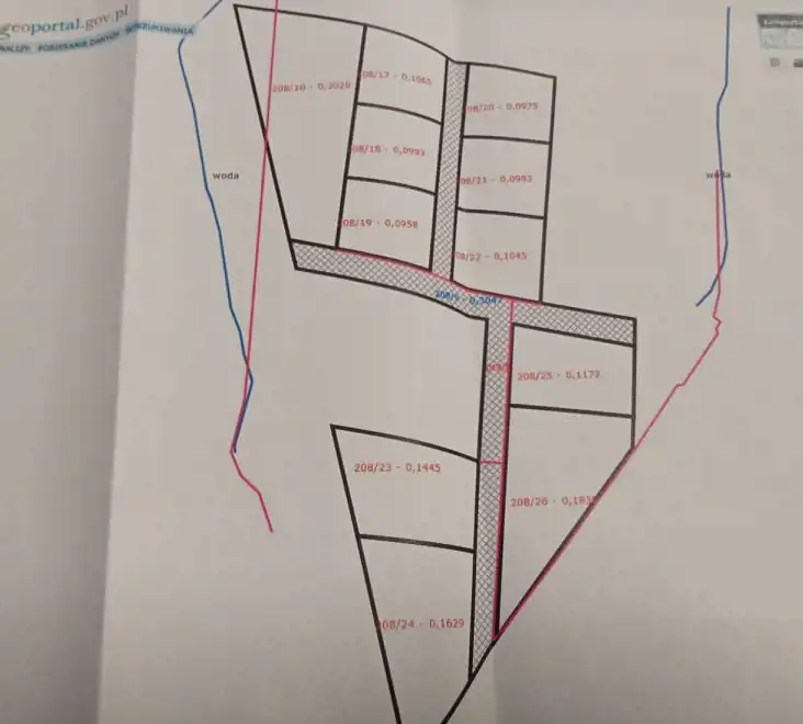 Działki są już uzbrojone w woda i prąd, dojazd drogą utwardzoną.