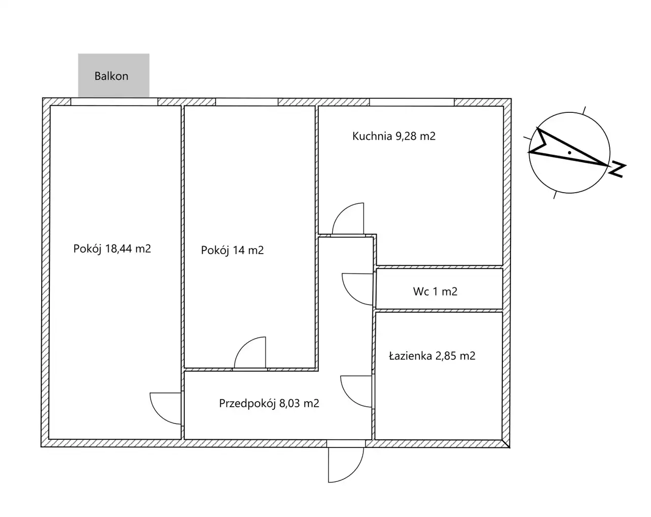 Mieszkanie jest przestronne, składające się z dwóch pokoi, przedpokoju, kuchni, łazienki oraz Wc.