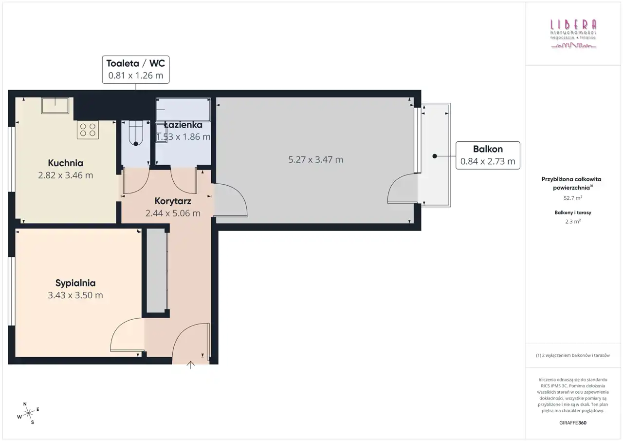 - Charakterystyka mieszkania 53.5 m2, 2 pokoje