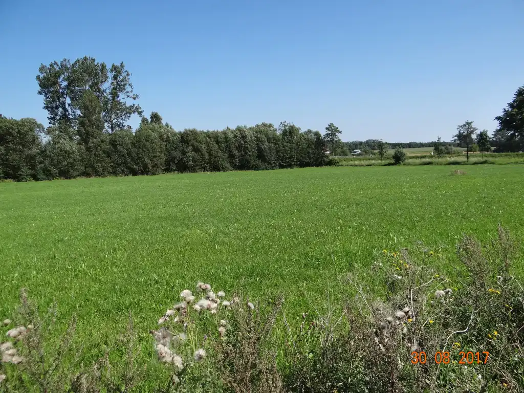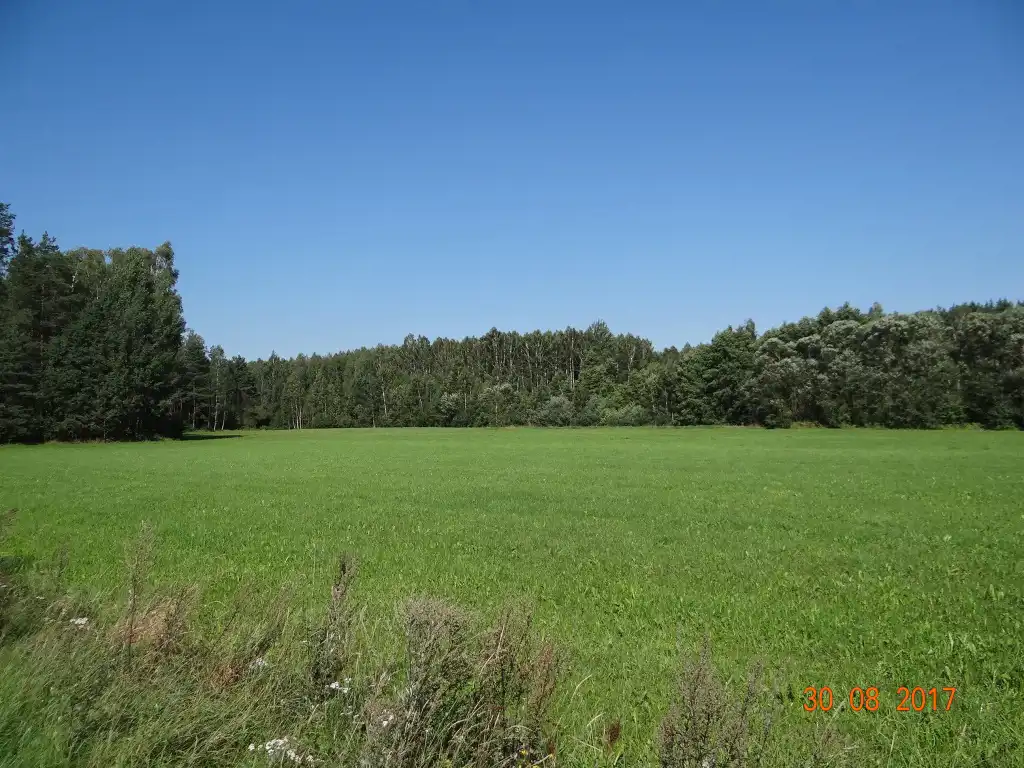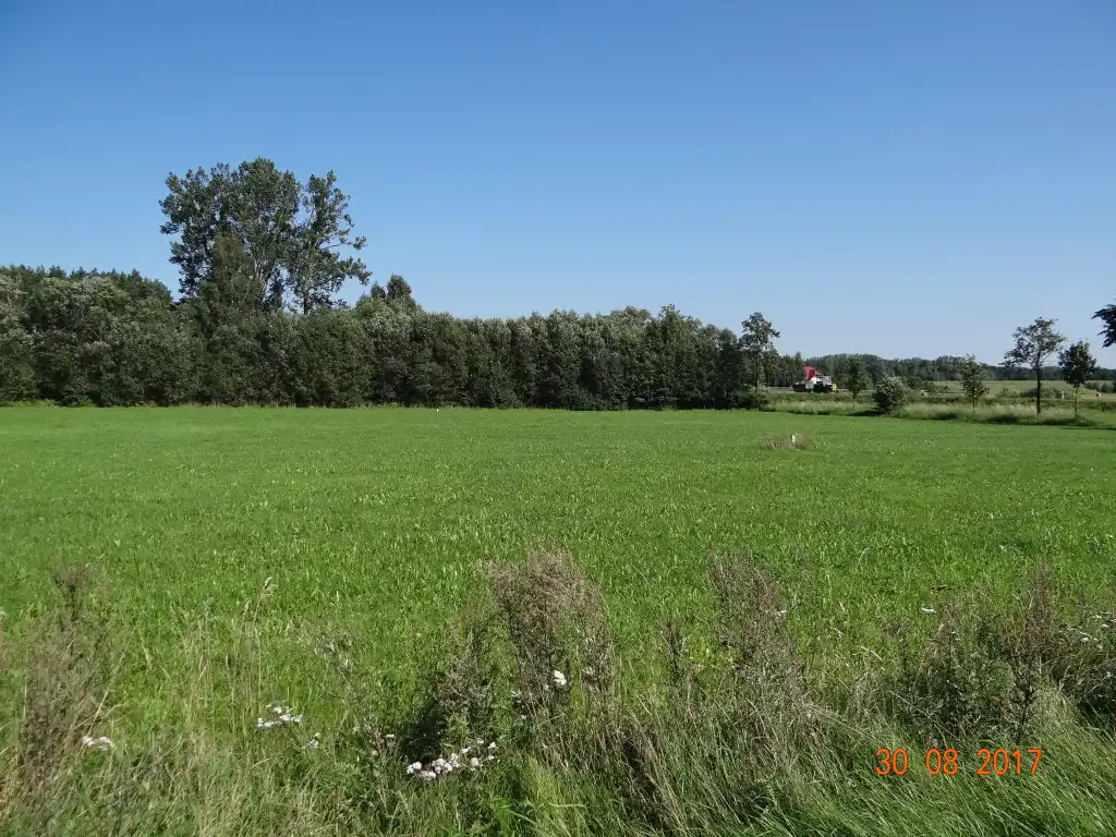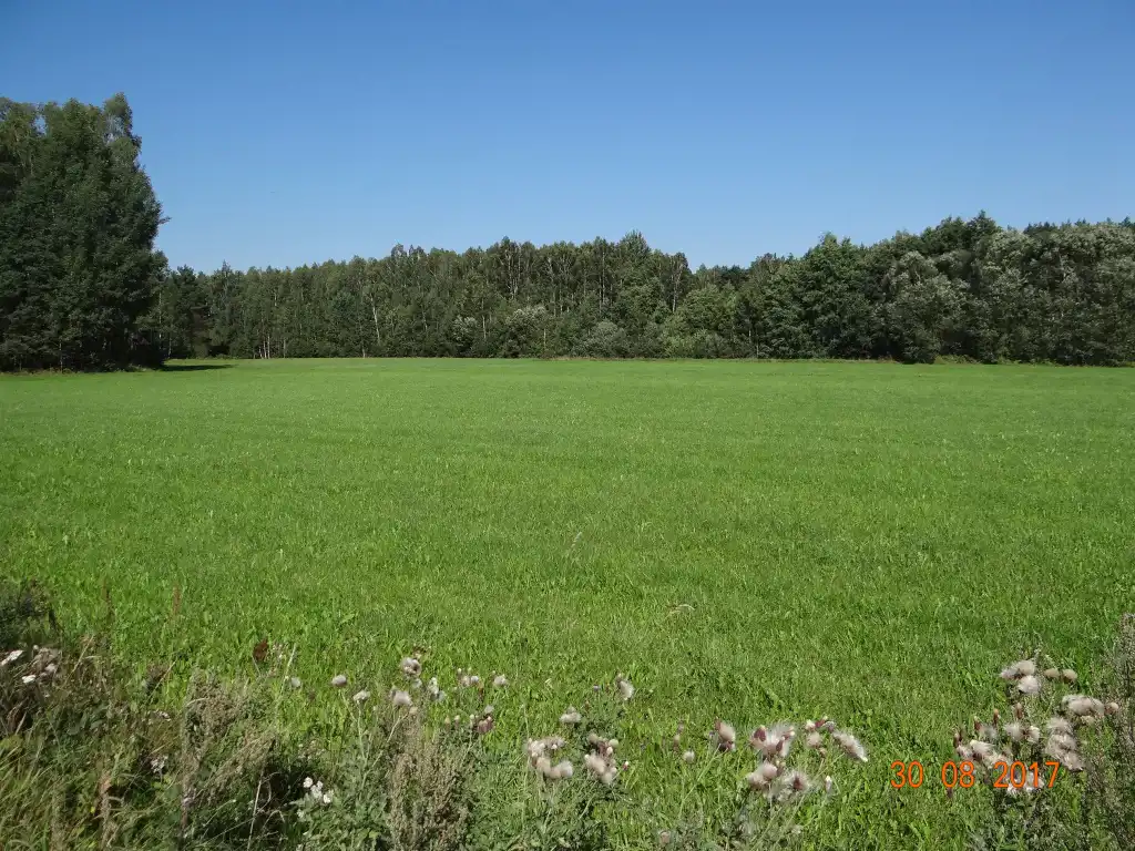 Działka płaska o wymiarach zbliżonych do prostokąta ok. 116m x 96m. Obecnie wykorzystywana jest jako łąka.
