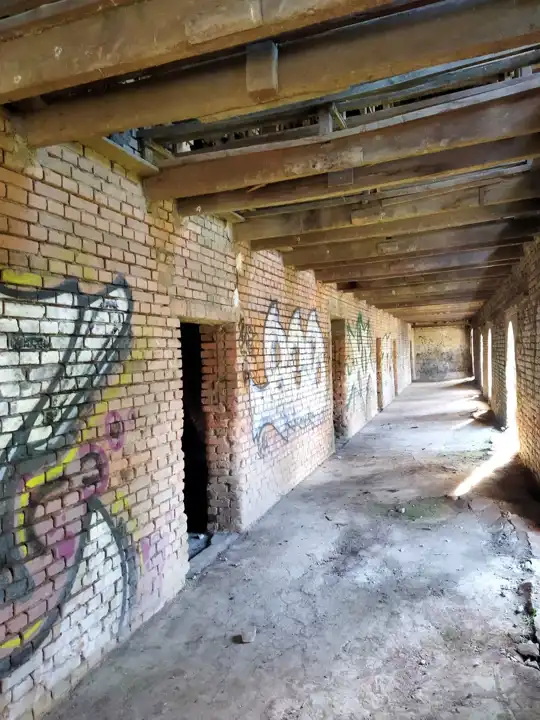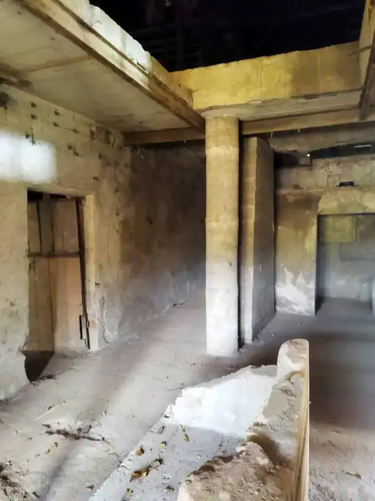 Budynek główny: stan średni, brak uszkodzeń konstrukcyjnych. Wymaga modernizacji elementów wykończeniowych.